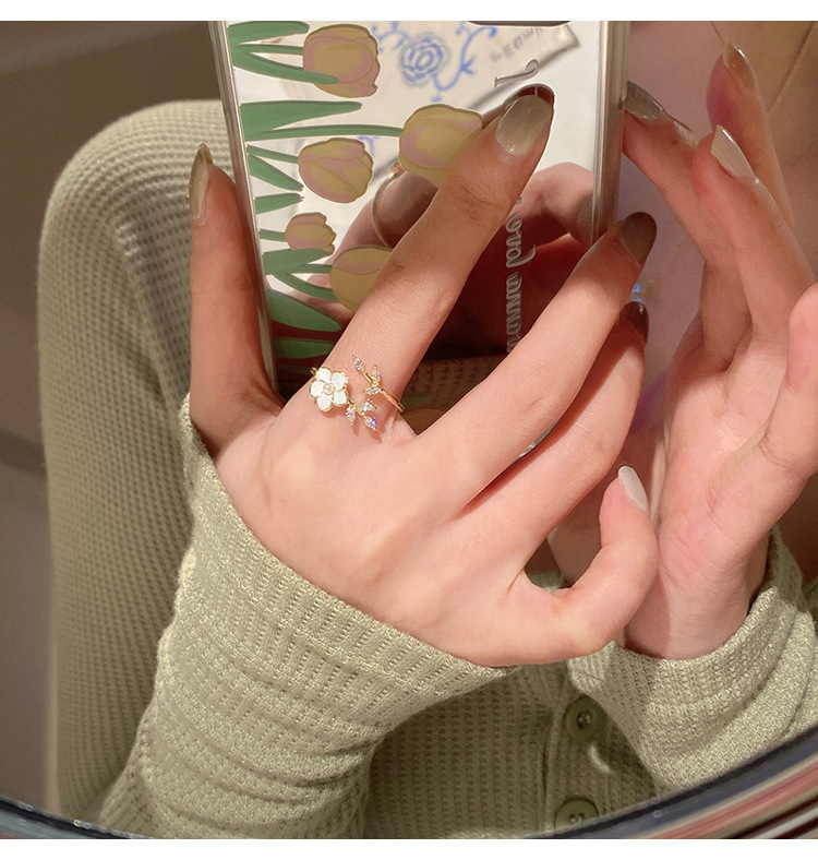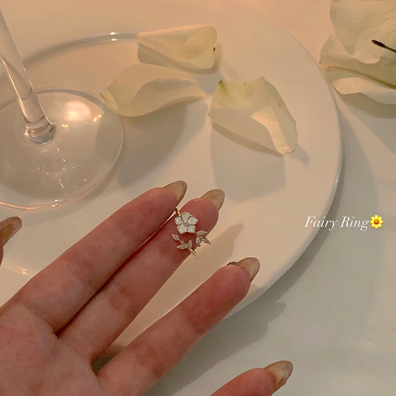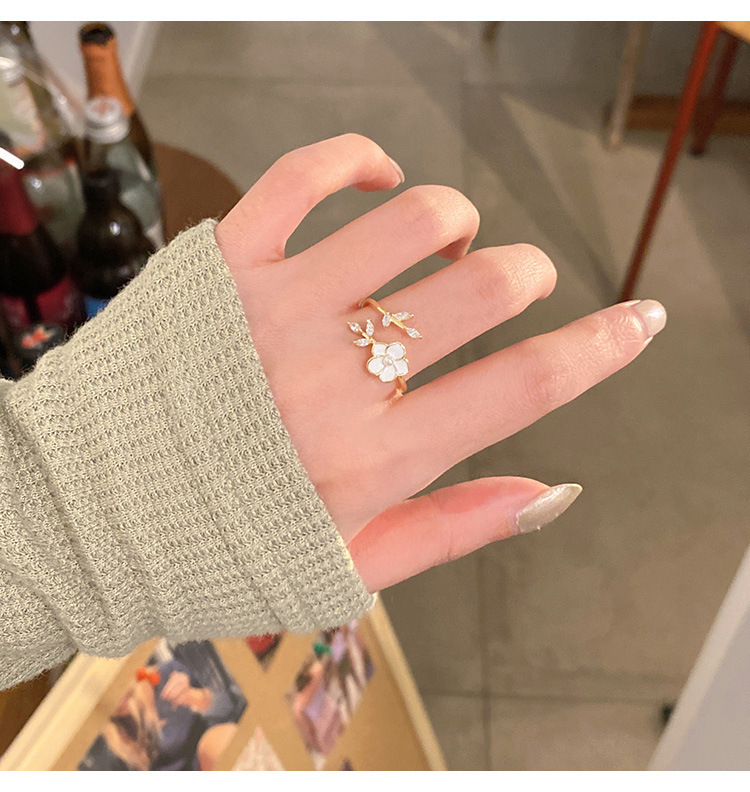 s925纯银法式复古戒指女山茶花树叶食指戒开口可调节新款潮