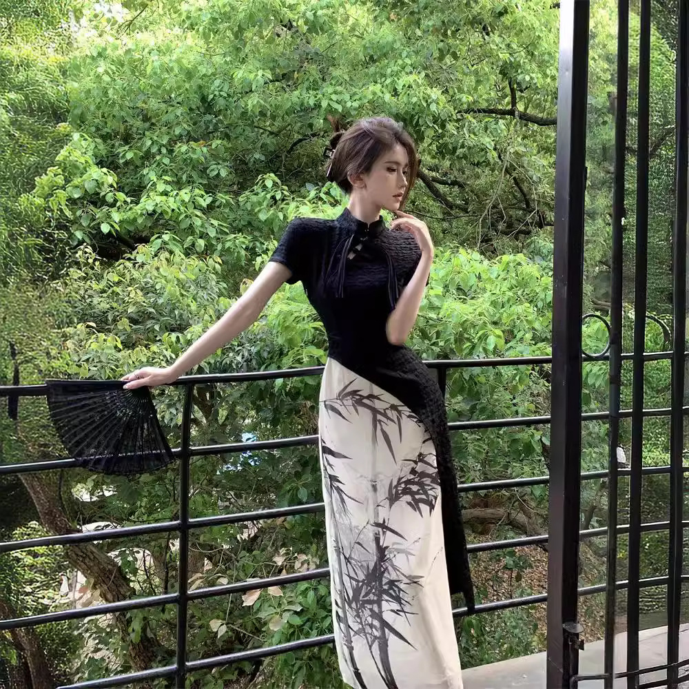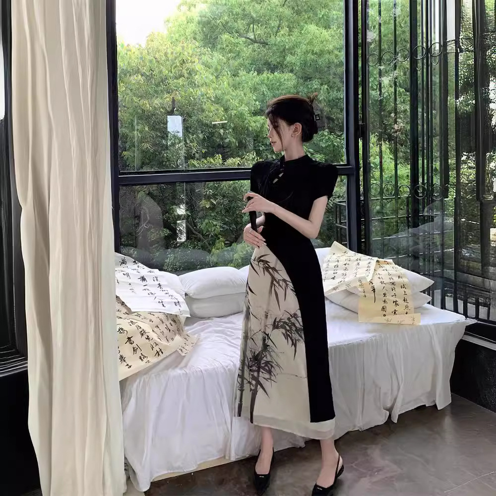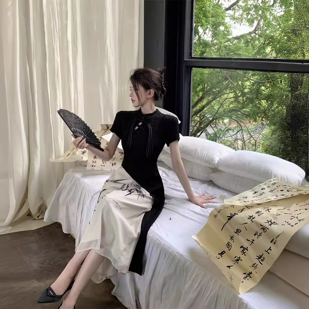 新中式女装旗袍女高级感连衣裙女夏季国风裙子女小众设计感水墨裙