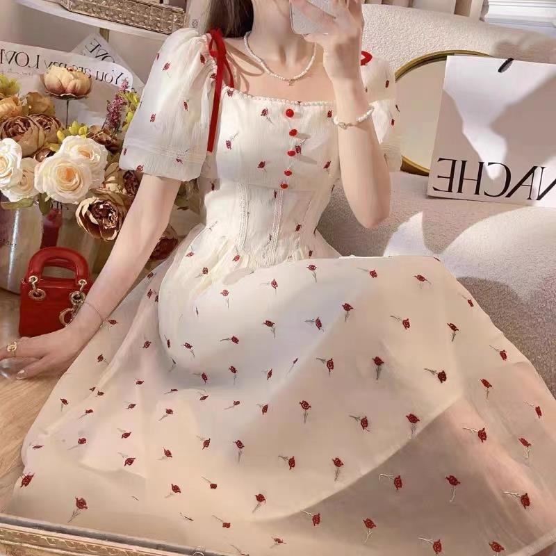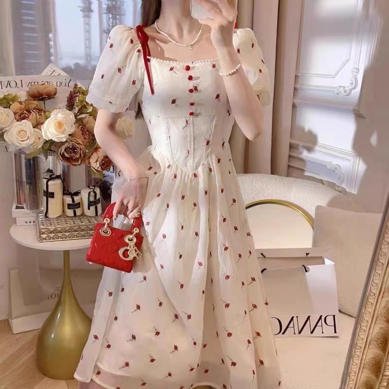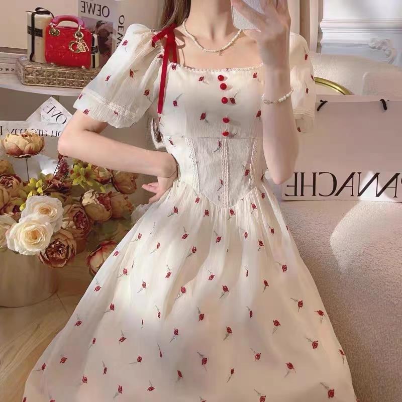 新款法式甜美风碎花连衣裙女夏季新款森系收腰显瘦超仙公主裙