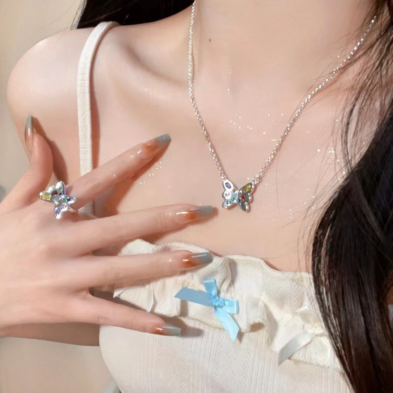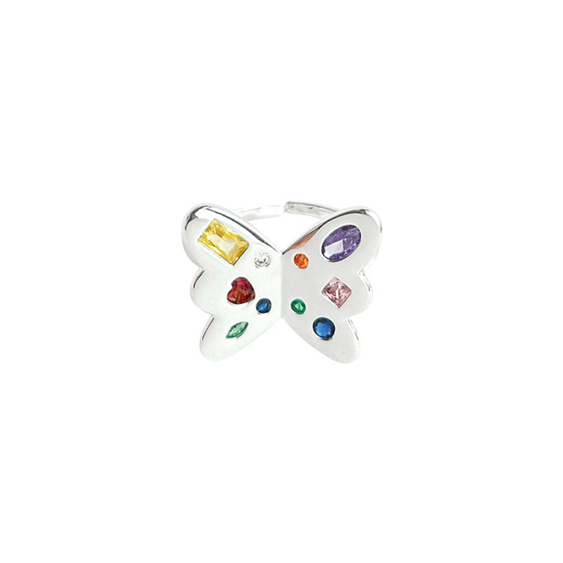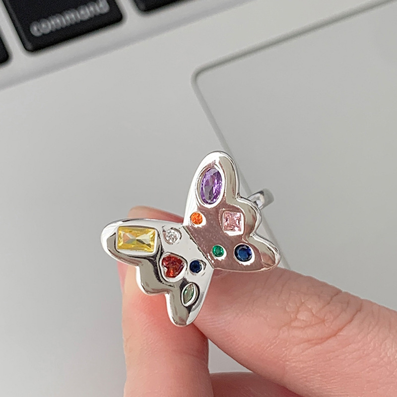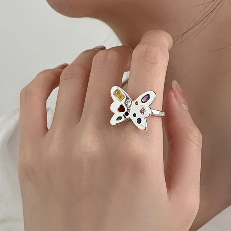 彩色锆石蝴蝶戒指女时尚新款潮食指开口可调节学生指环