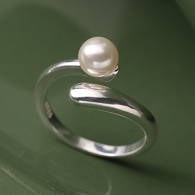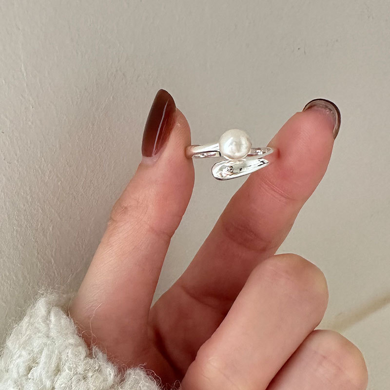 S925纯银饰水滴珍珠戒指环女款开口设计感高级可调节轻奢时尚