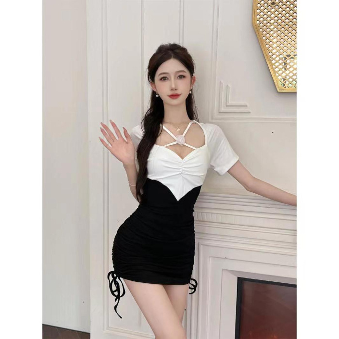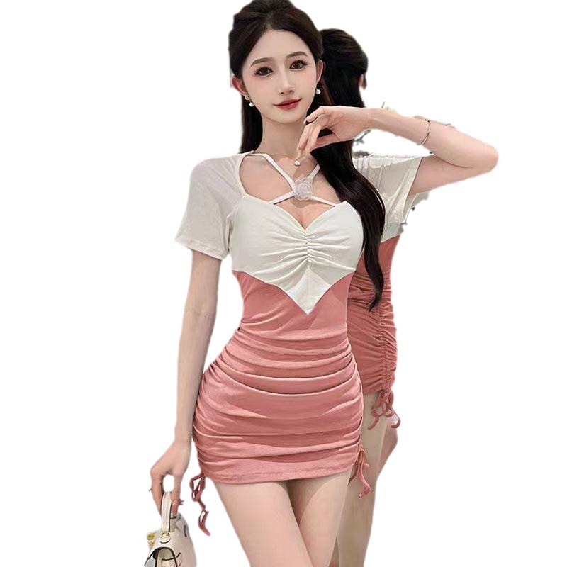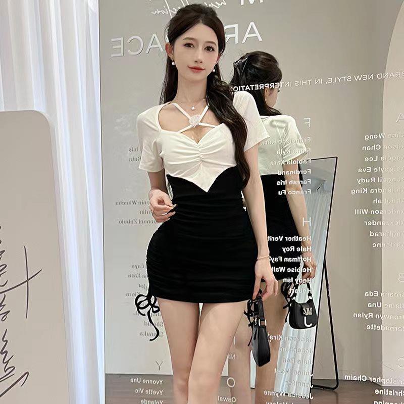 夏季新款辣妹纯欲性感设计感小众裙子收腰包臀短袖连衣裙女装