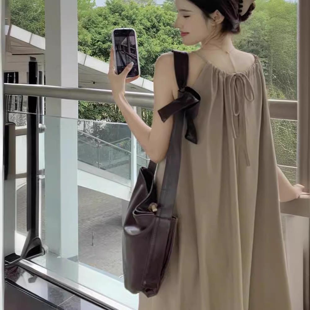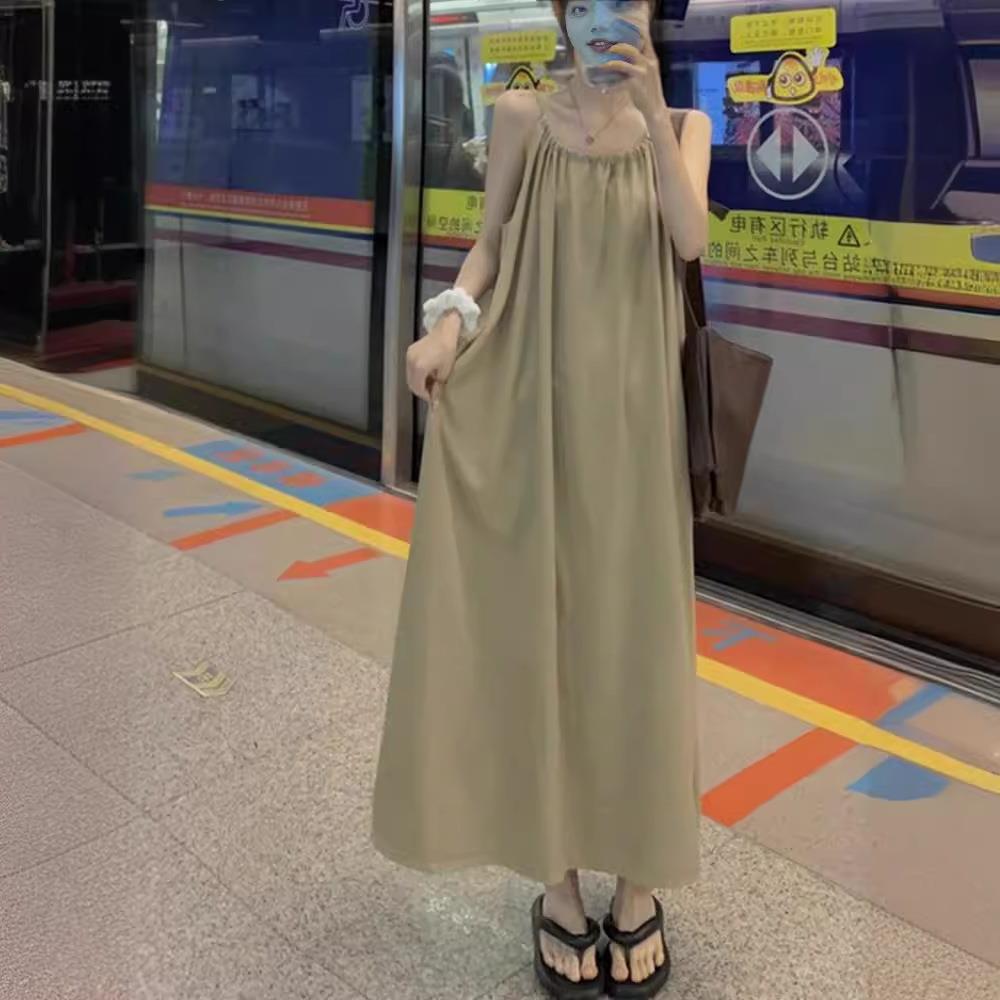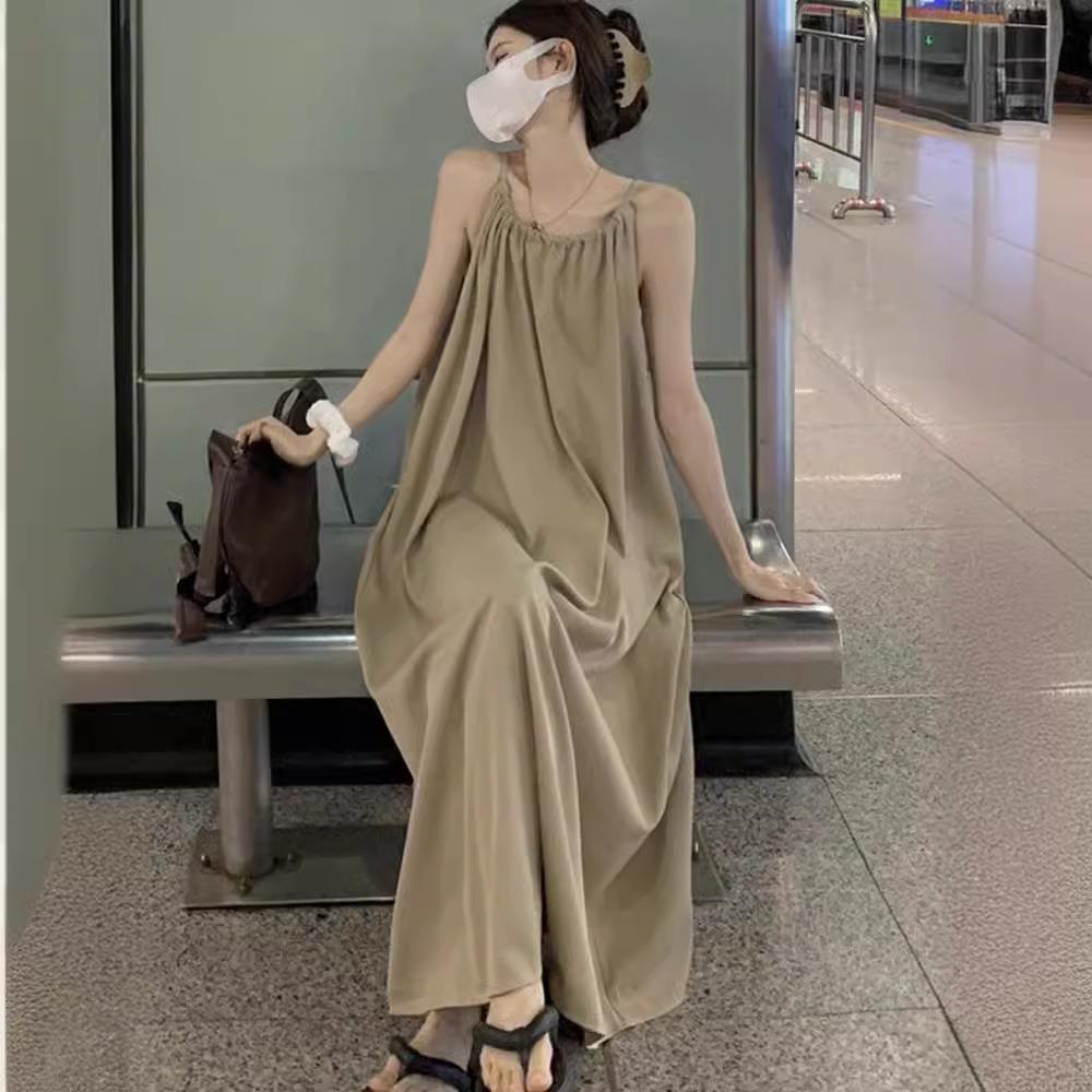 大码轻熟性感吊带连衣裙女夏微胖mm遮肚藏肉裙子休闲百搭宽松长裙