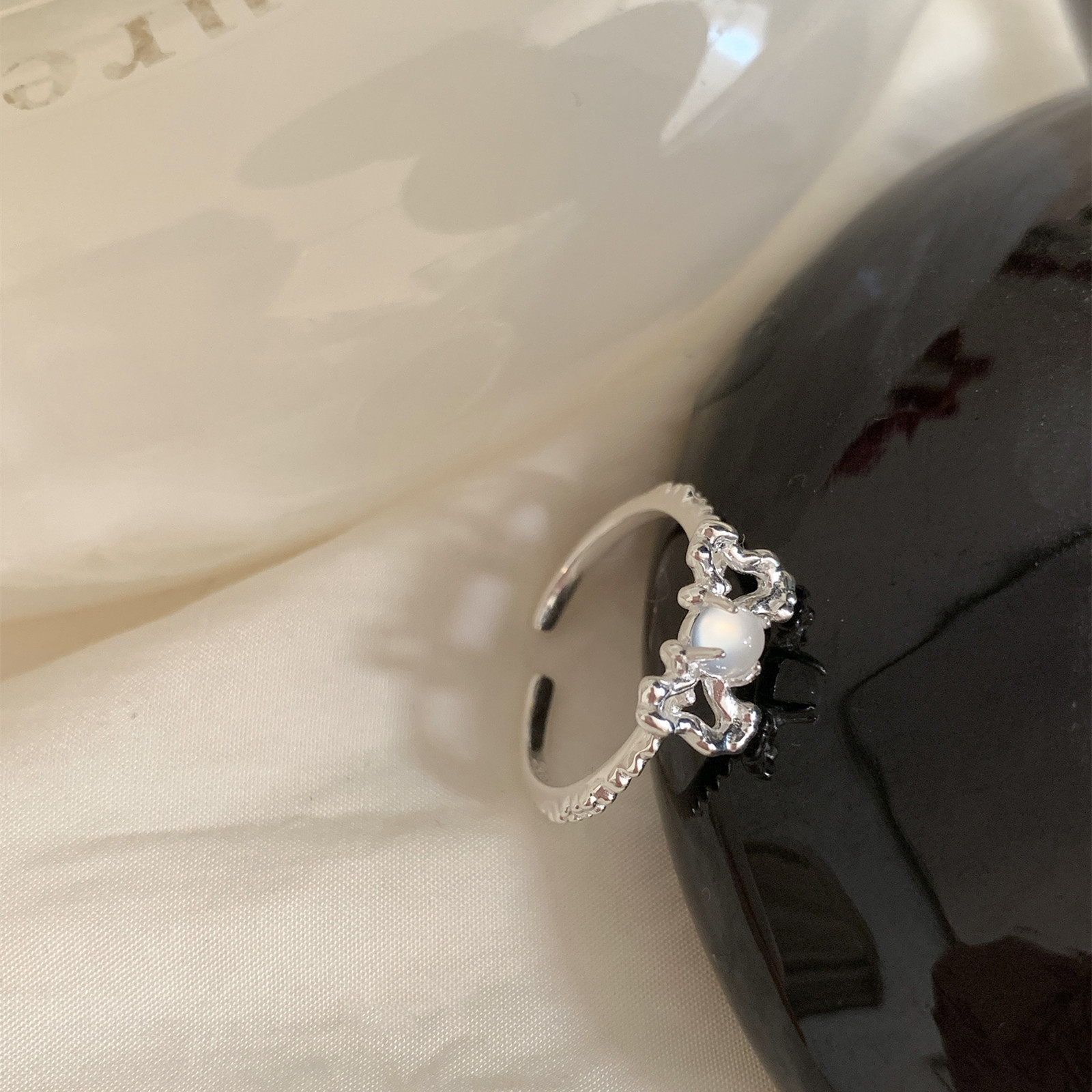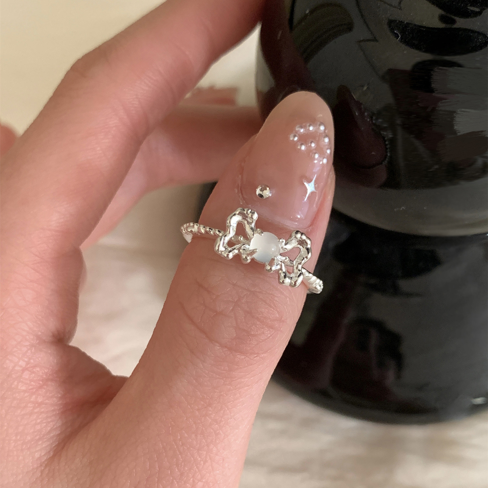小众设计师款蝴蝶结晶石戒指轻奢气质高级感食指戒开口可调节指环
