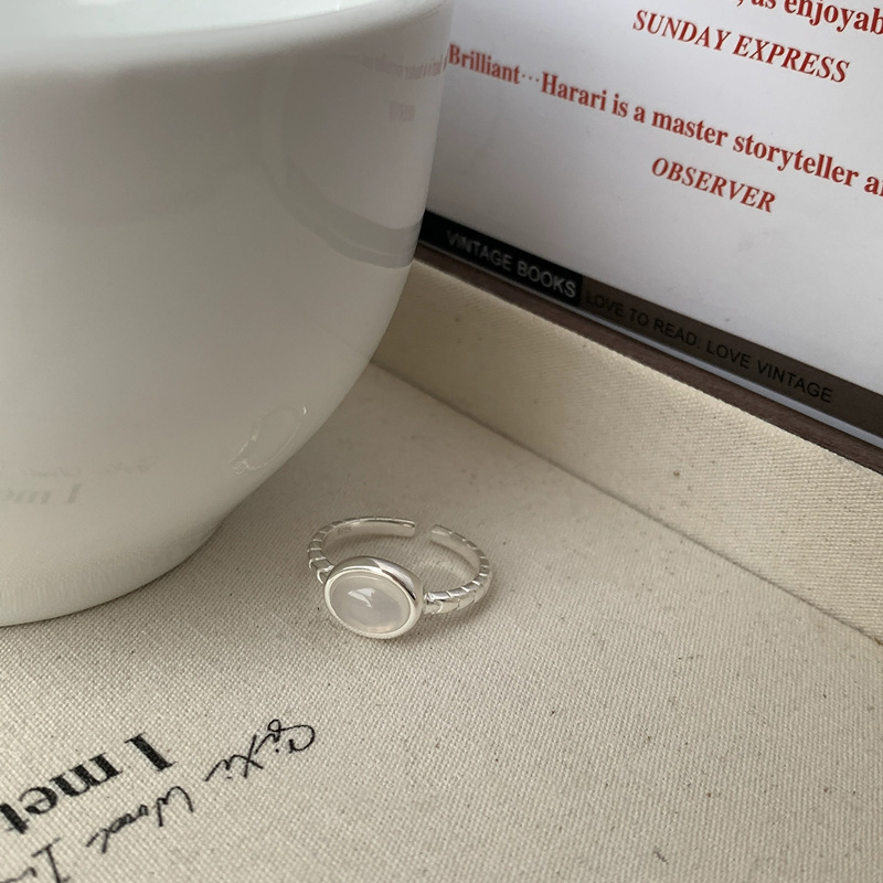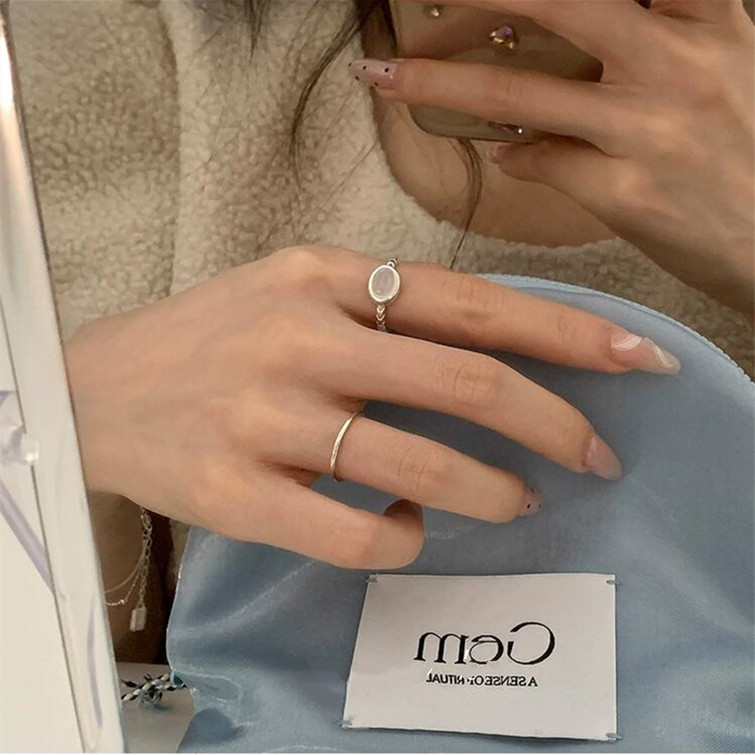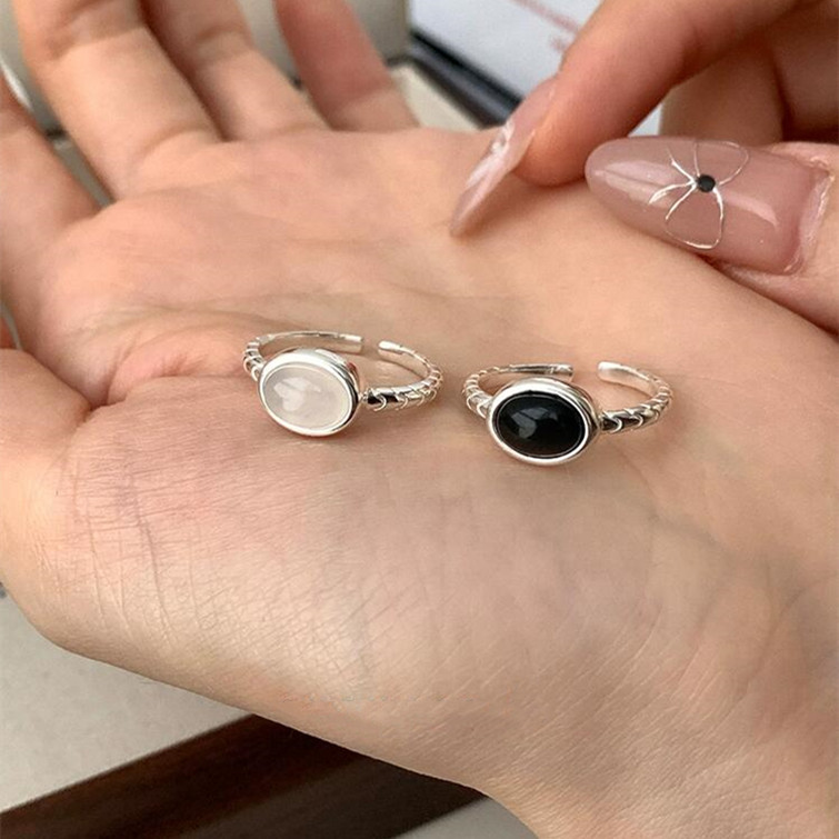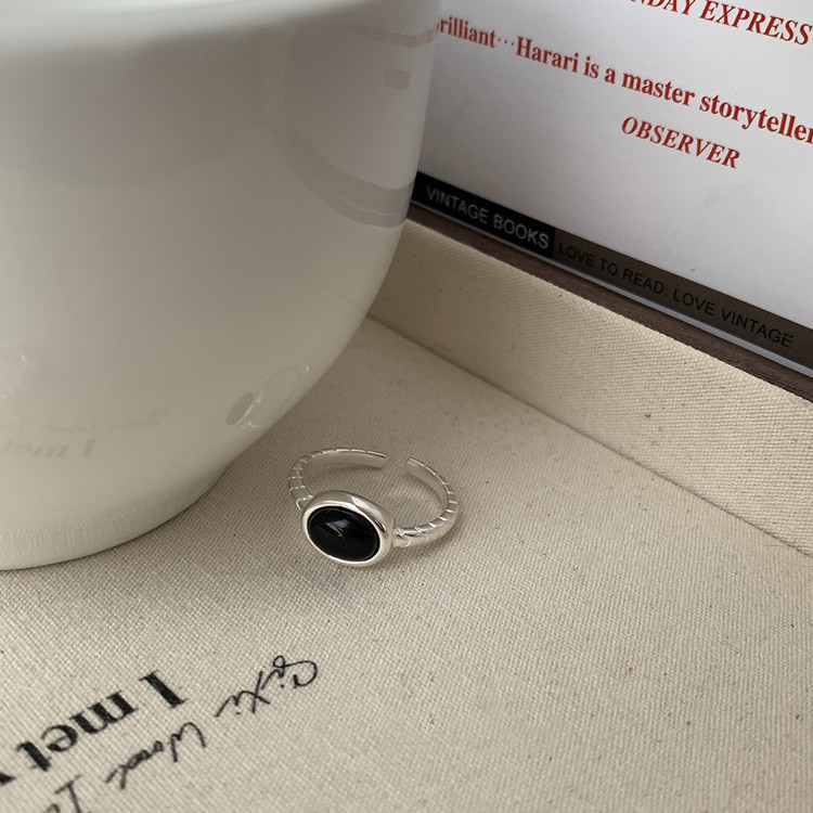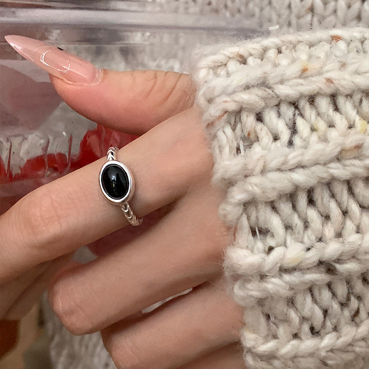 清冷风椭圆玛瑙戒指女小众设计可调节食指戒叠戴高级简约指环
