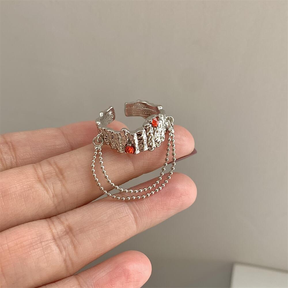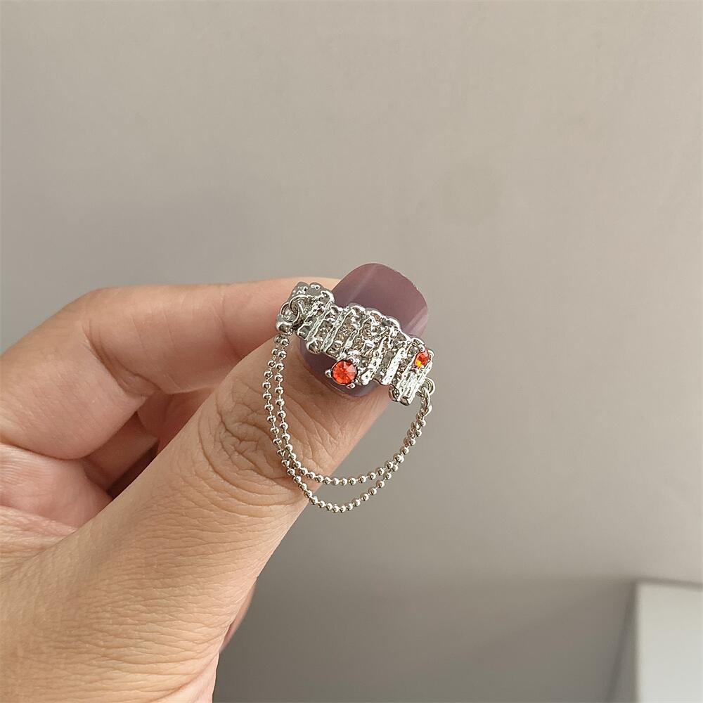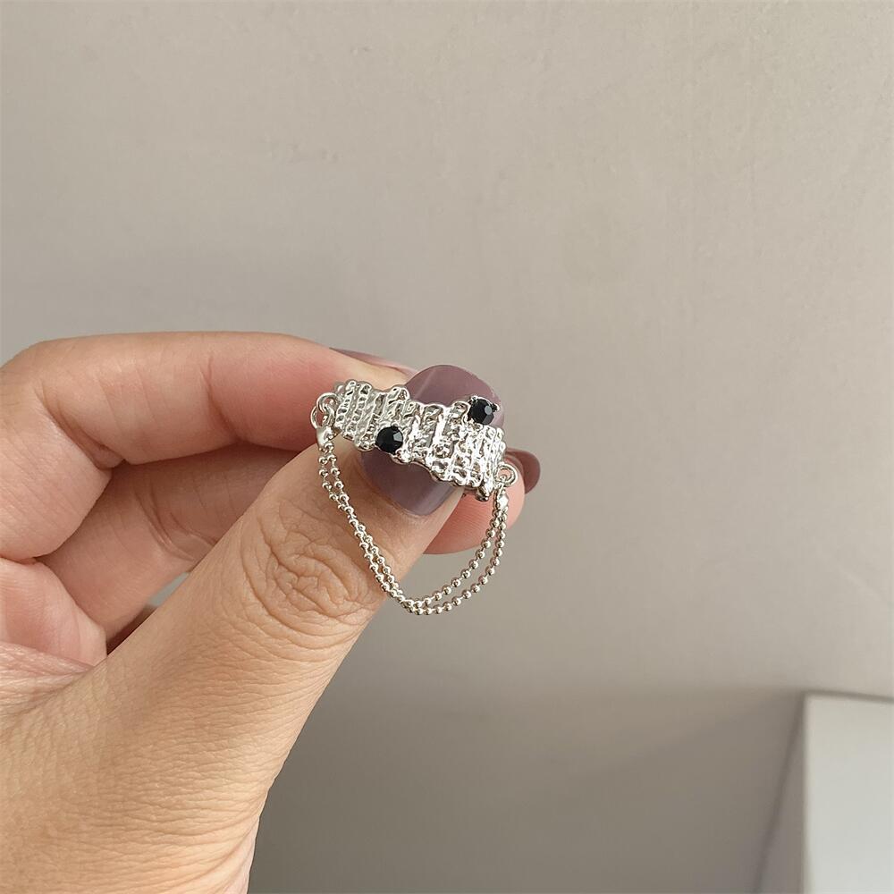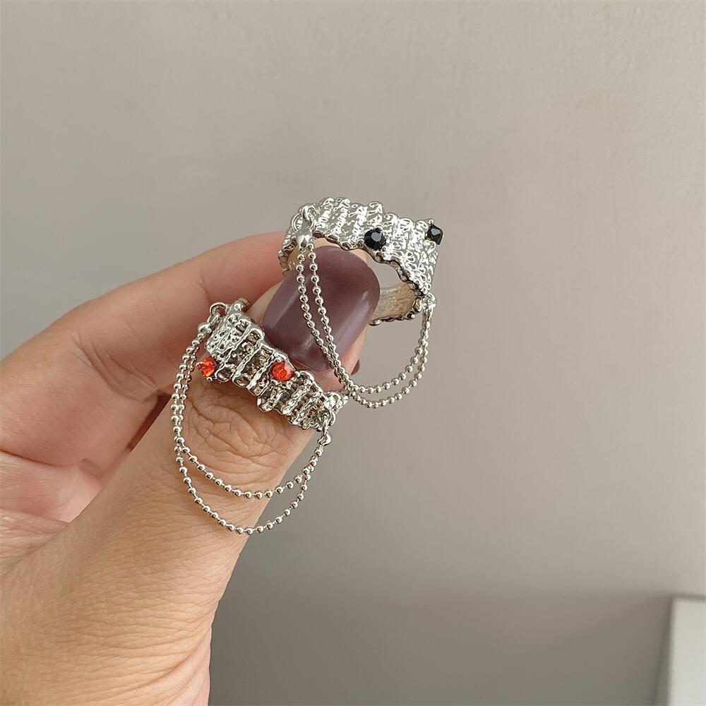 设计感液态金属对立镶钻链条流苏情侣个性冷淡风戒指开口指环暗黑