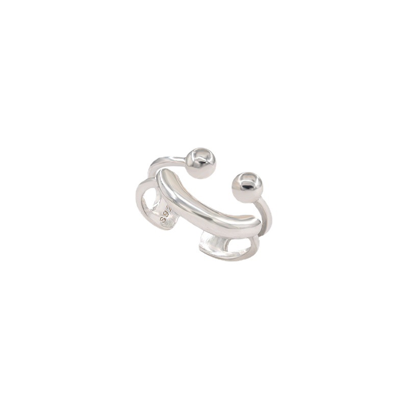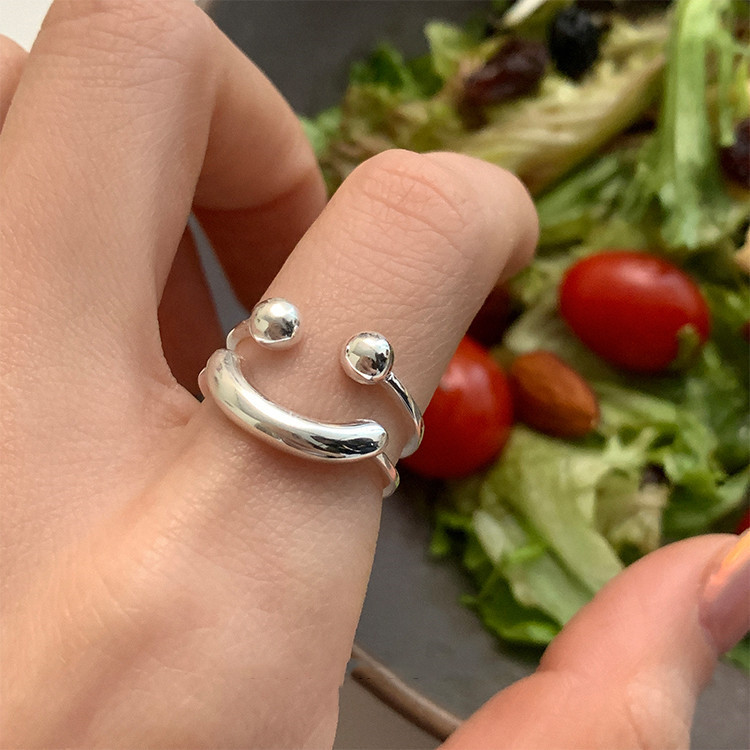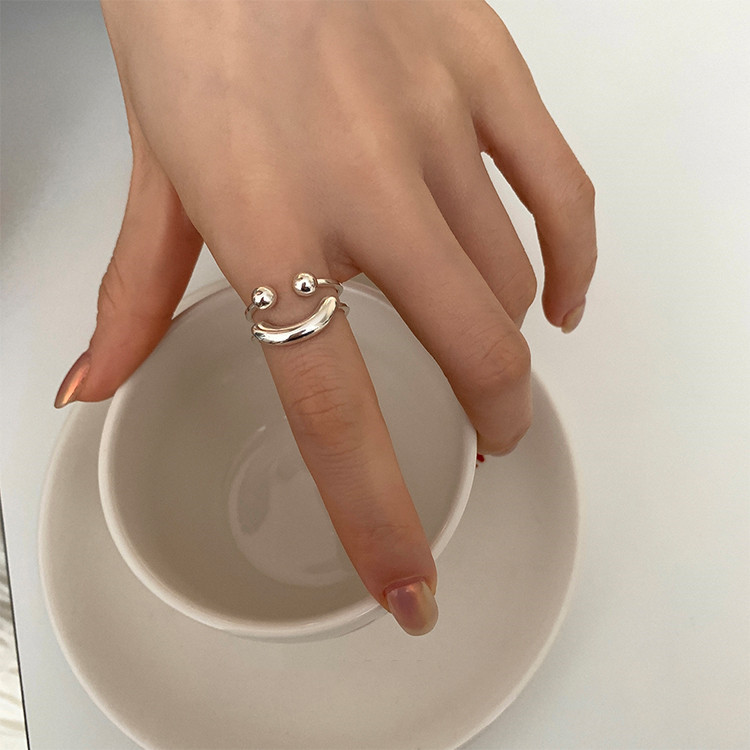 笑脸戒指女小众设计高级感新款潮双层韩系食指戒指环女开口可调节