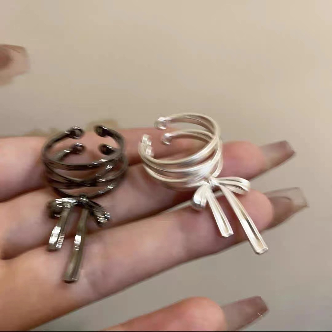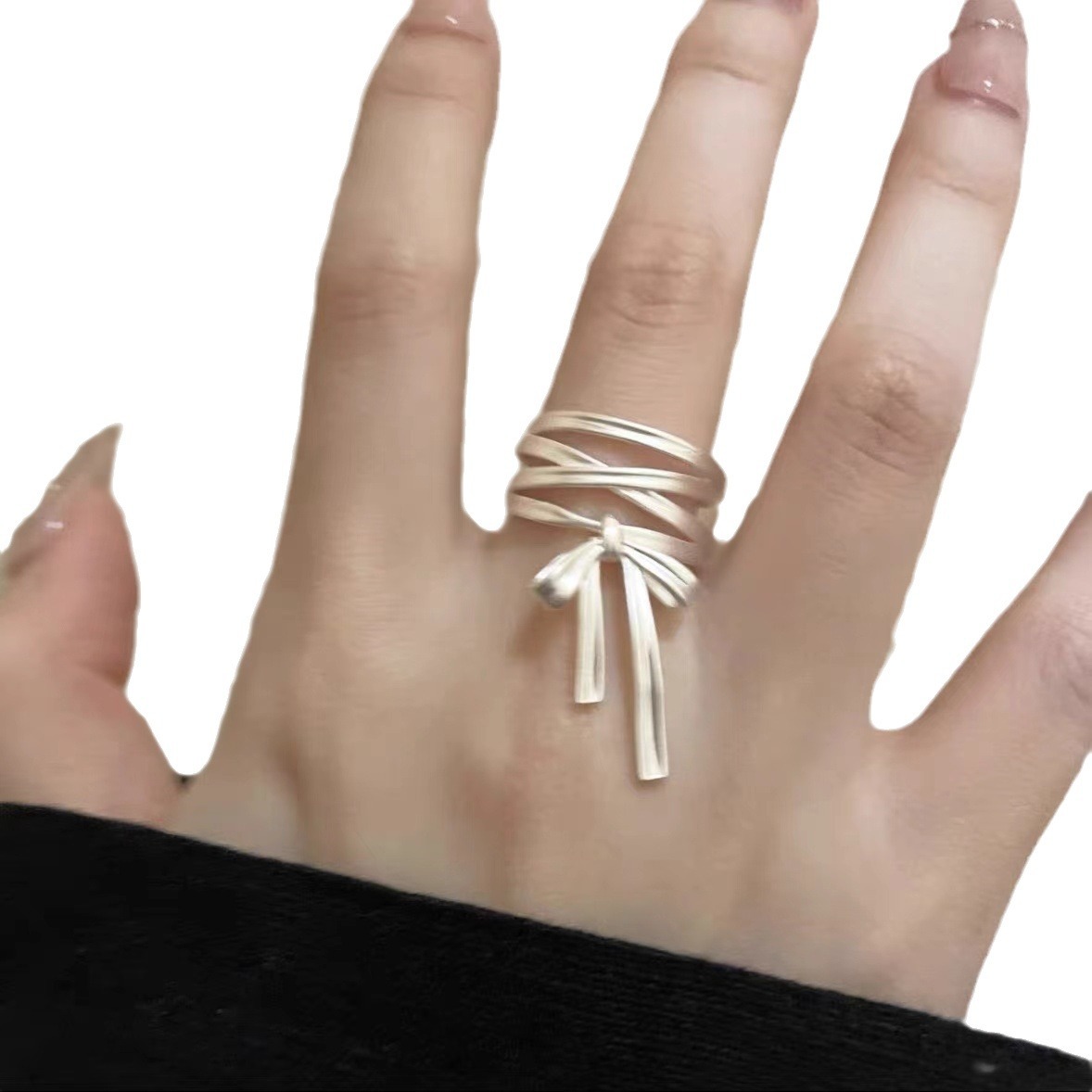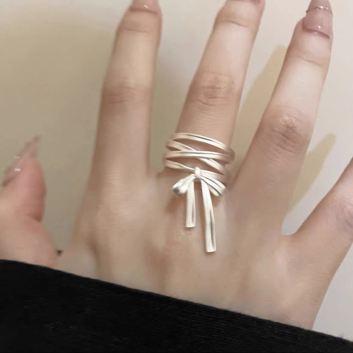 芭蕾风蝴蝶结丝带开口戒指女小众设计可调节食指戒独特网红指环潮