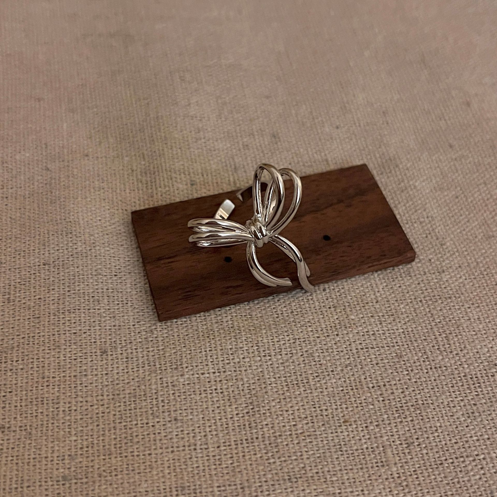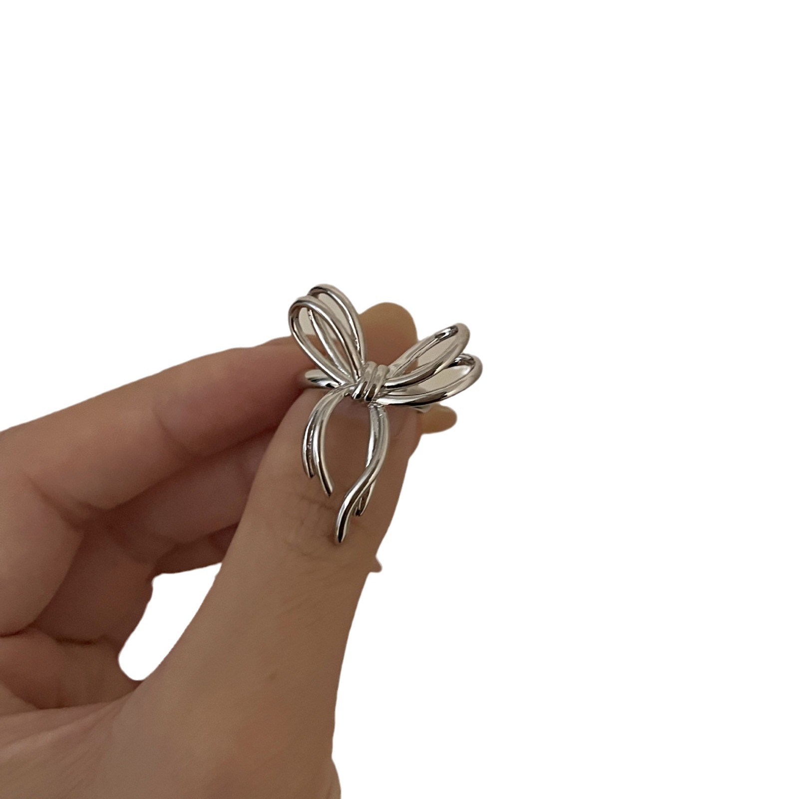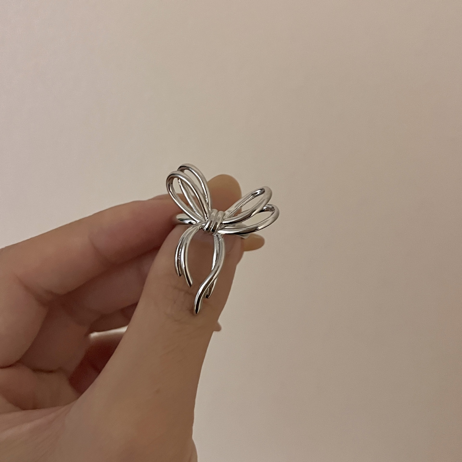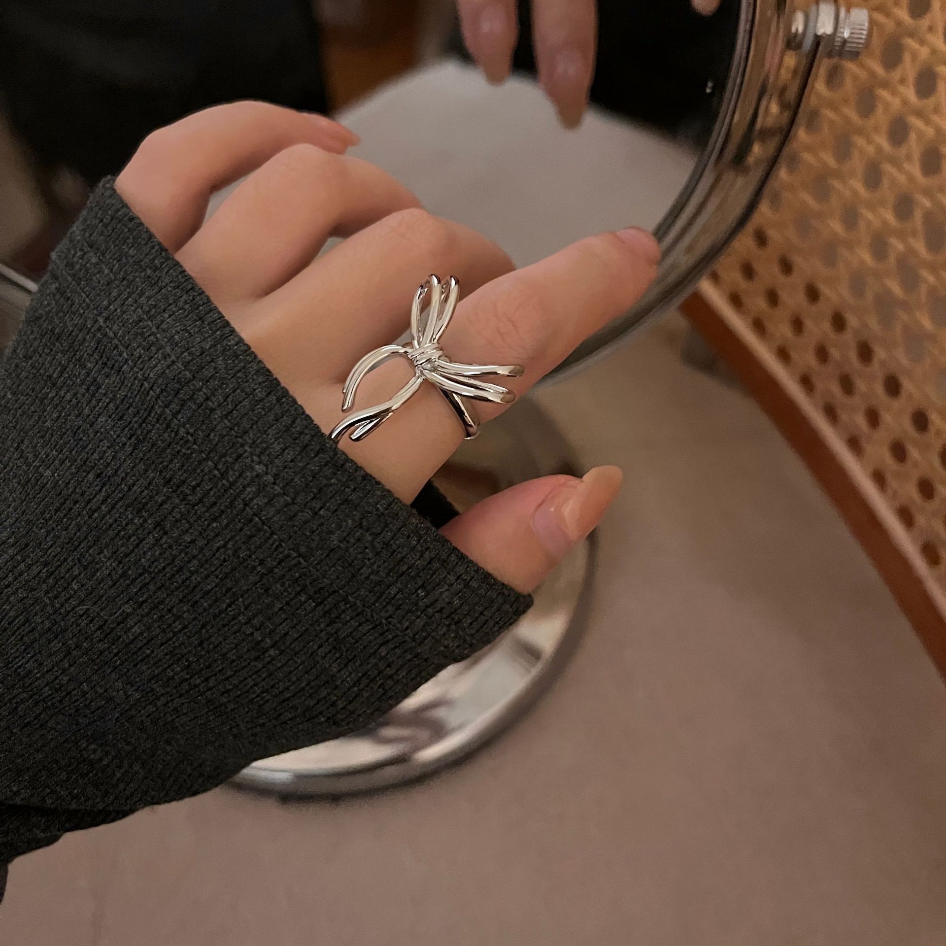 日韩蝴蝶结绕线夸张甜酷开口戒指银色时髦可爱冷淡风指环少女配饰