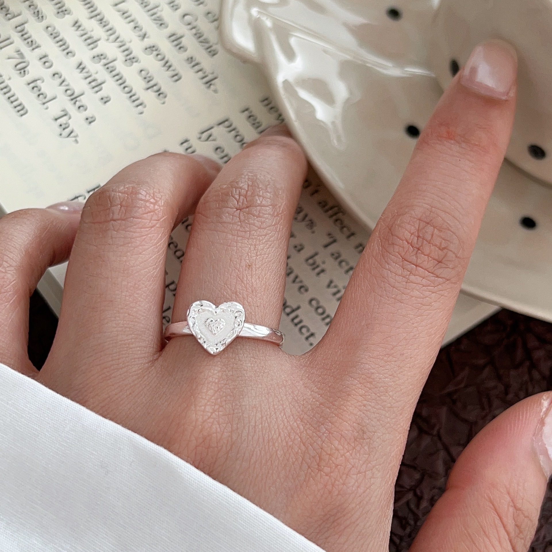 纯银爱心戒指女开口熔岩小众时尚ins冷淡风韩国气质指环