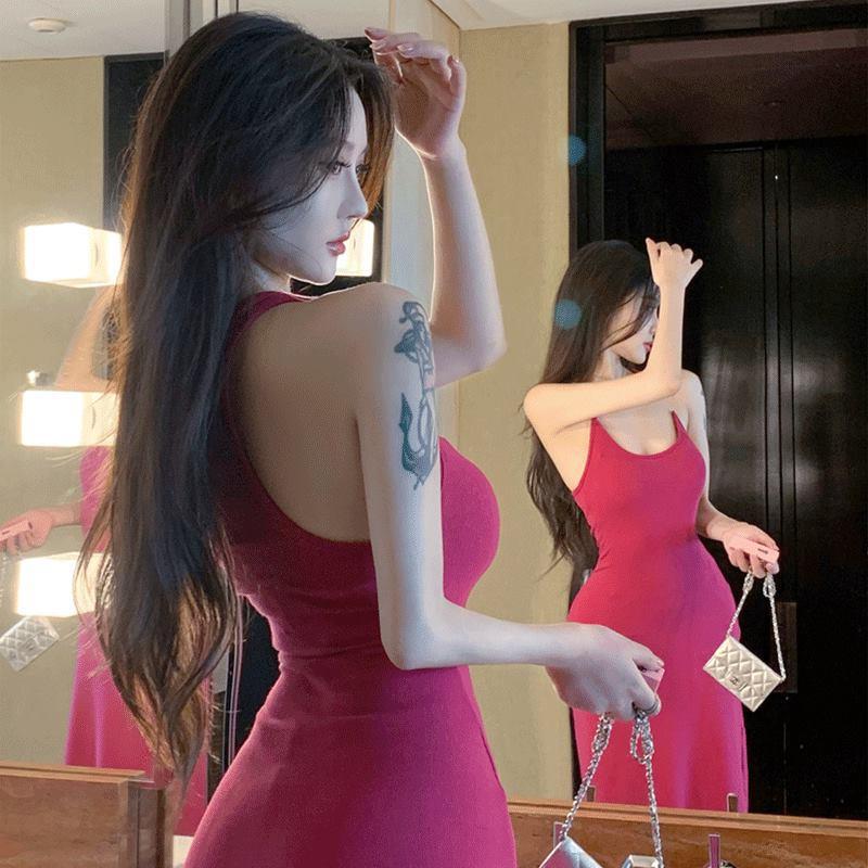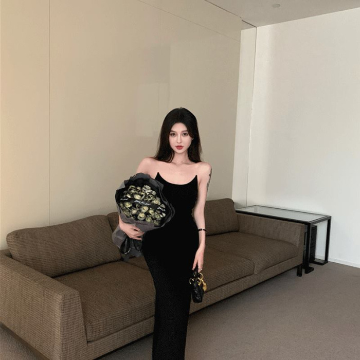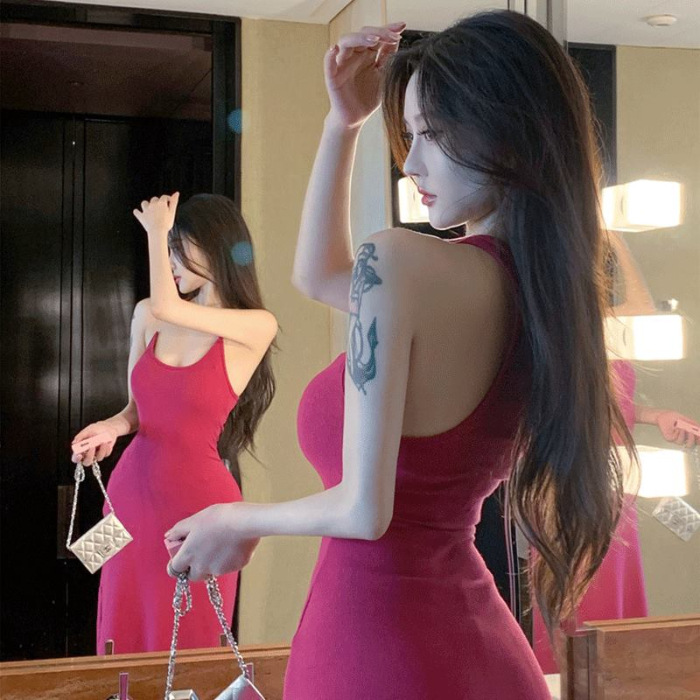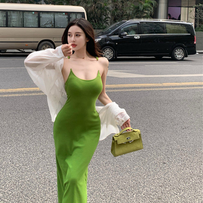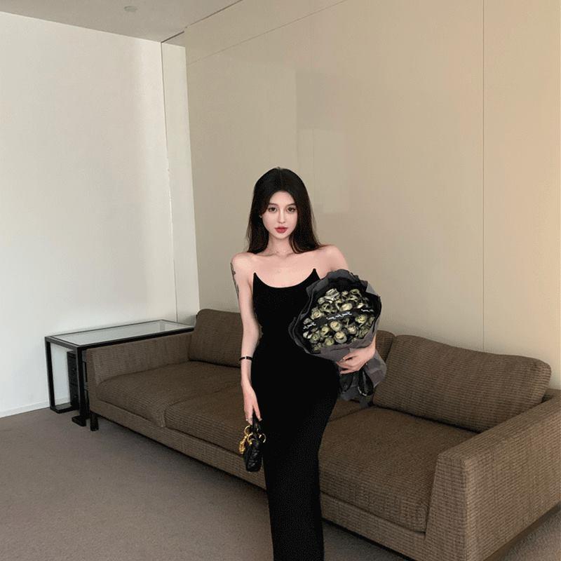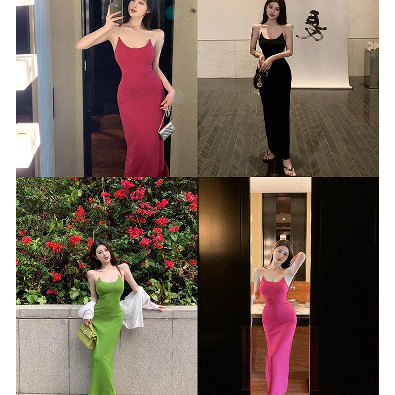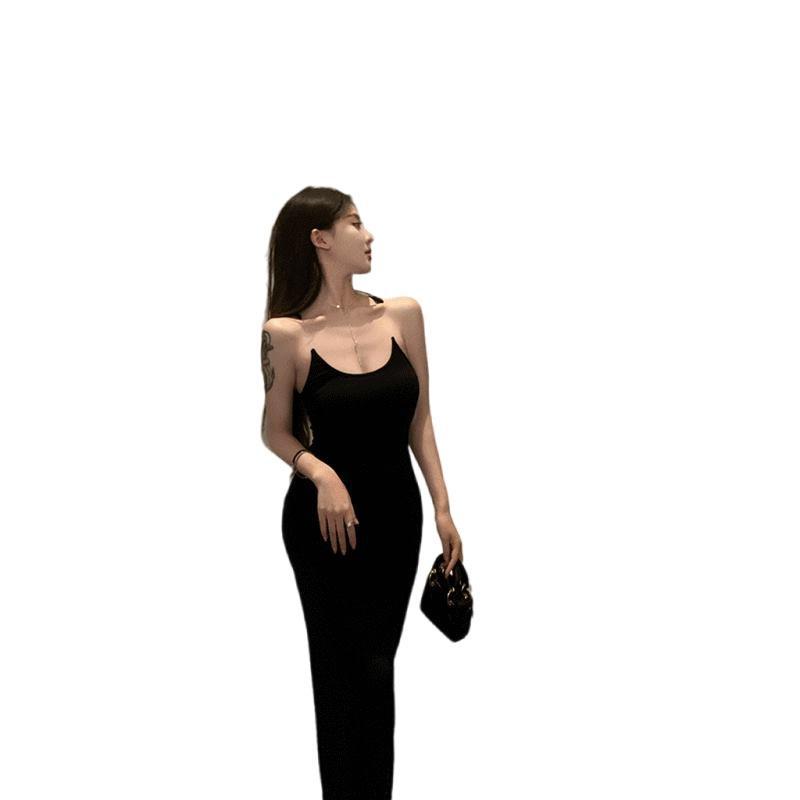 纯欲隐形吊带连衣裙女夏季露肩裙子性感收腰修身显瘦包臀裙中长裙