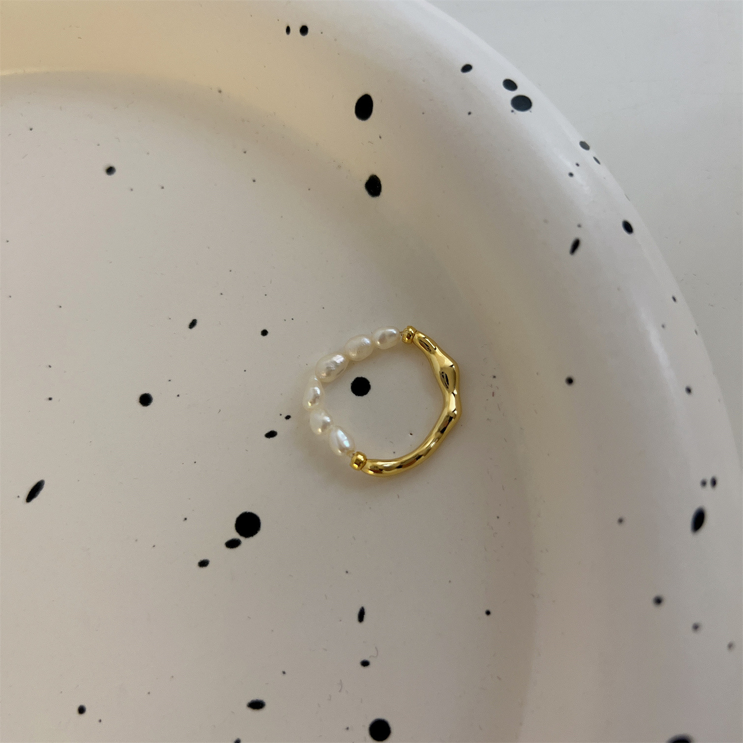 气质温柔可调节大小的弹力绳淡水珍珠戒指品质法式小众冷淡风指环