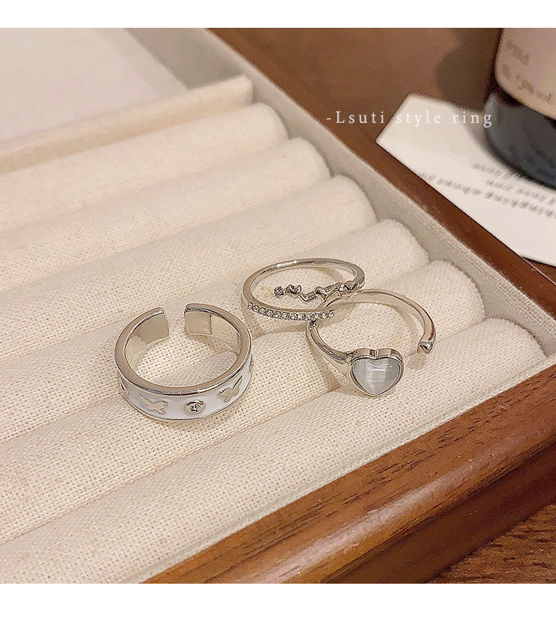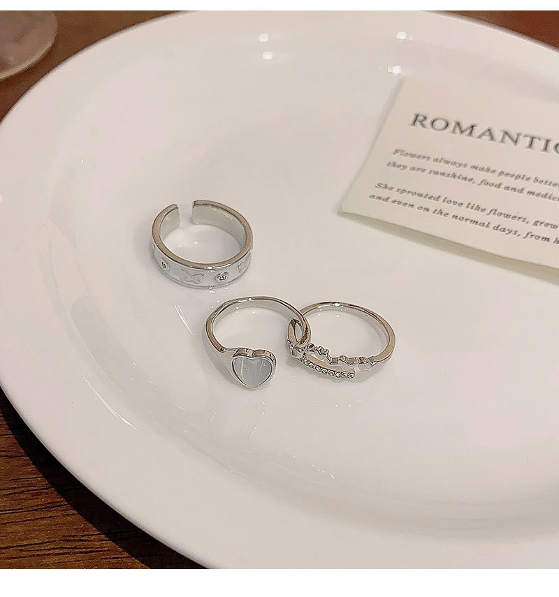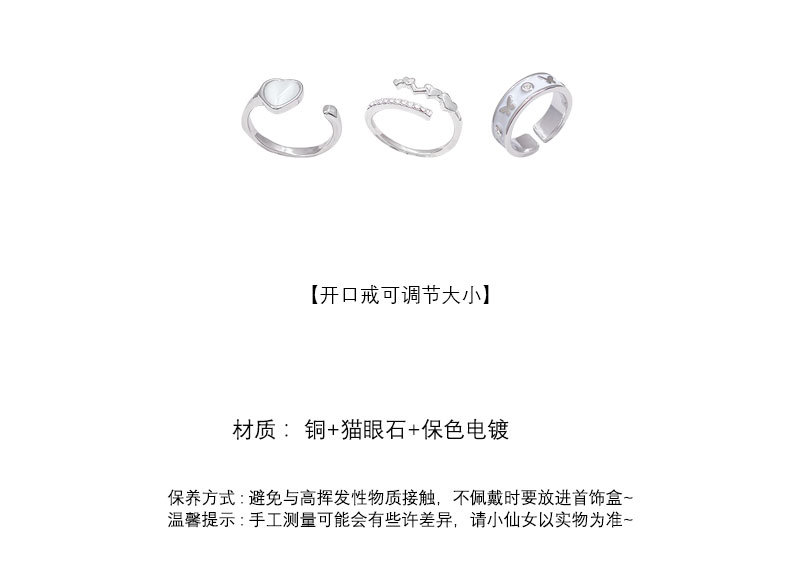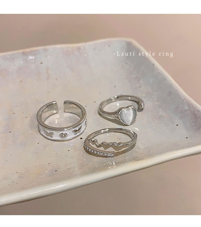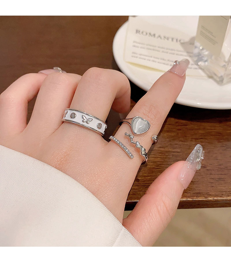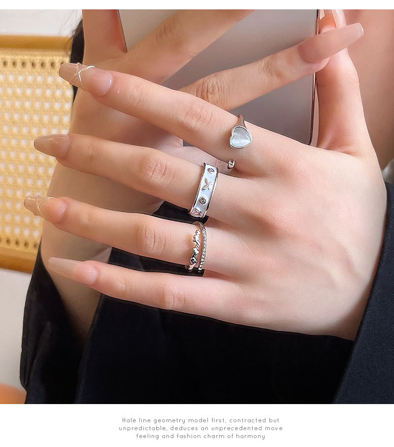 ins风银色爱心套装戒指女甜酷小众设计气质食指戒百搭开口手饰品