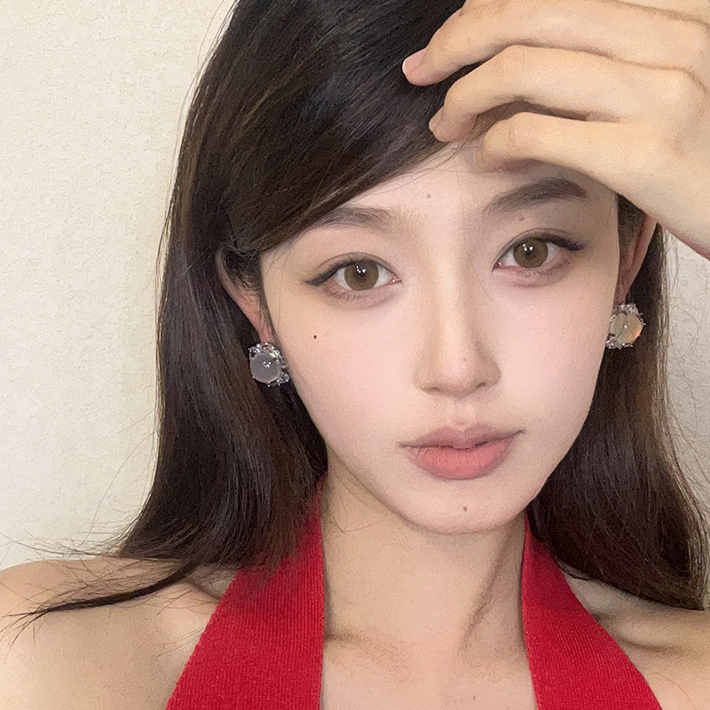 新中式国风渐变锆石耳钉气质轻奢高级感耳环新款耳饰潮