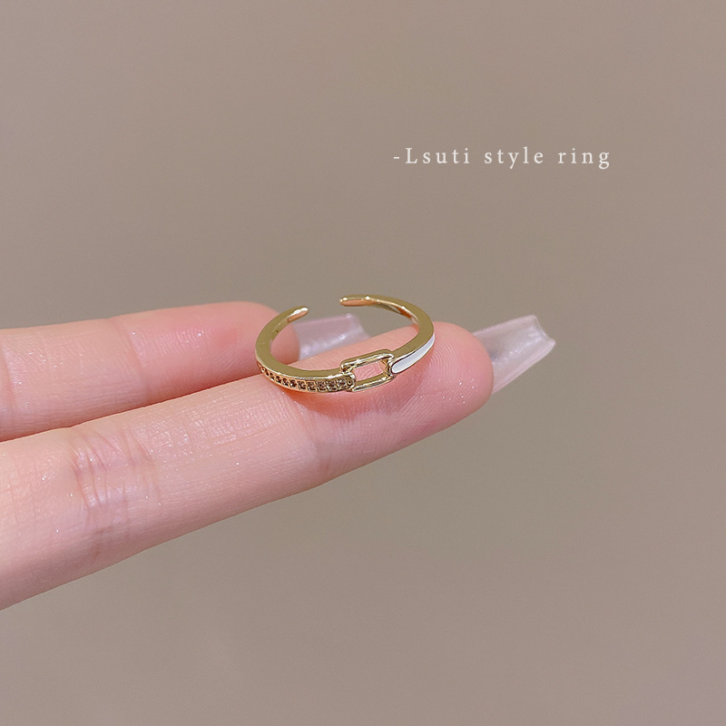 高级感微镶锆石皮带戒指女轻奢气质开口食指戒韩版ins风新款手饰