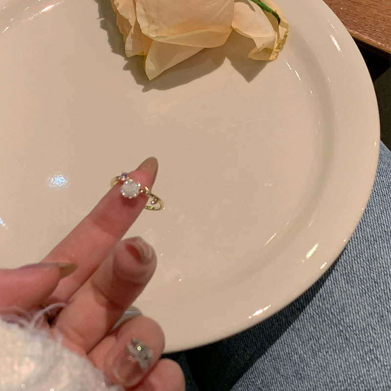山茶花戒指女开口可调节小众设计高级感锆石食指戒年新款手饰