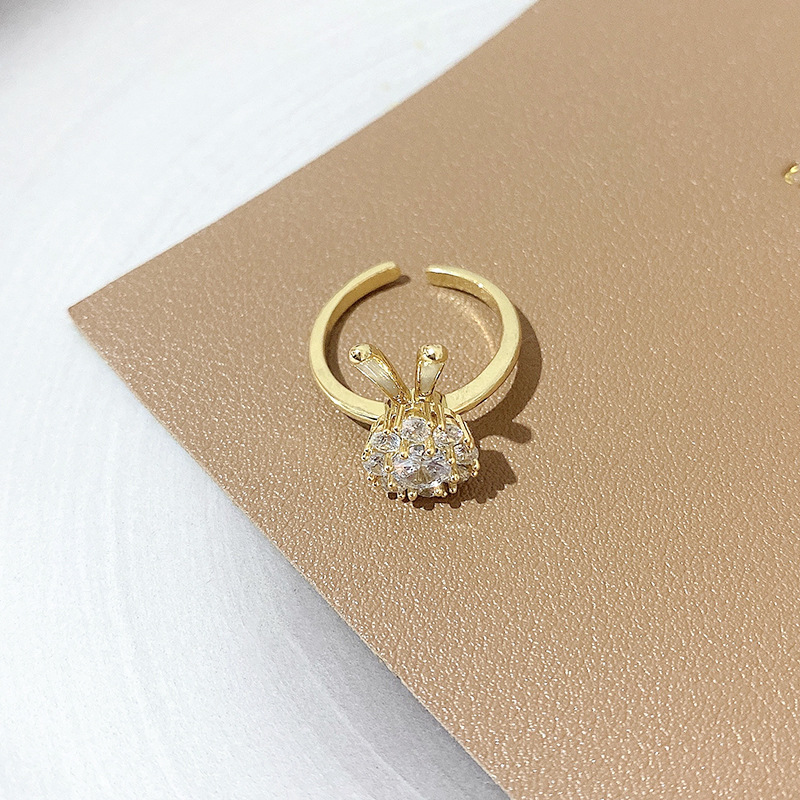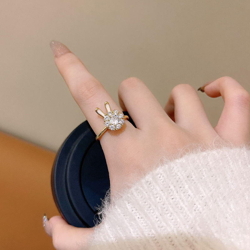可旋转的小兔子戒指女轻奢气质高级感锆石指环戒可调节个性开口戒