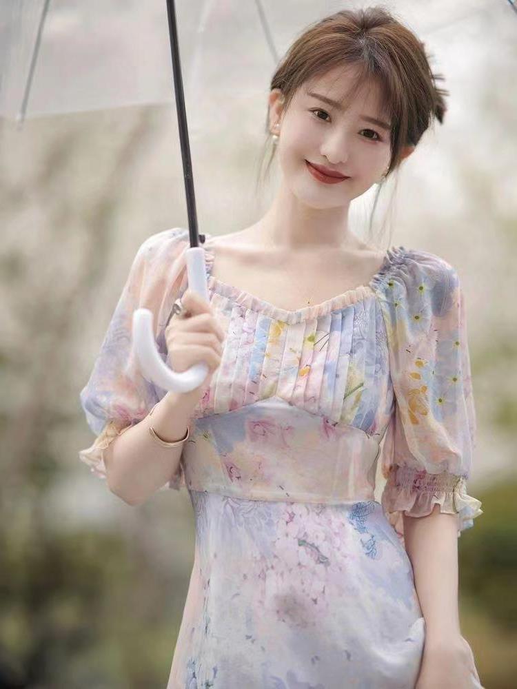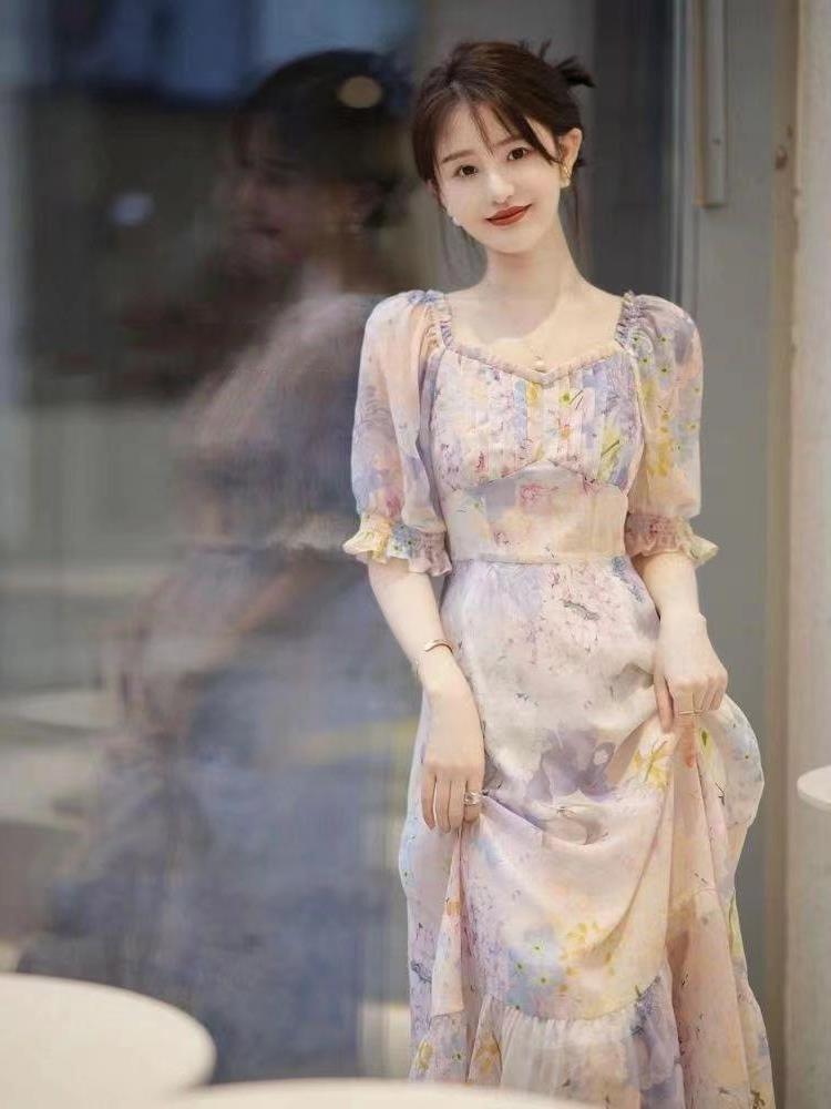 夏季新款小香风高端精致茶歇法式名媛气质绝美花色油画连衣裙