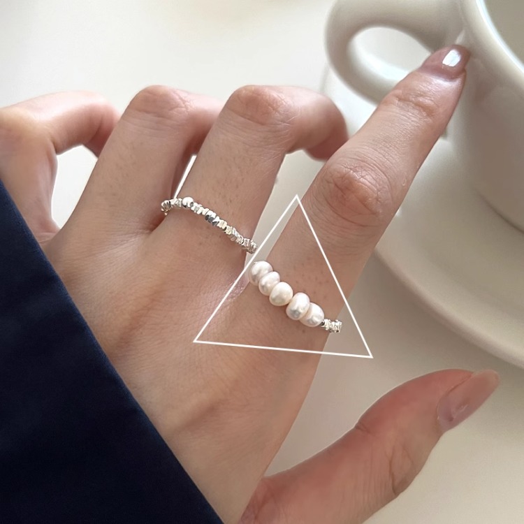 新款碎银子珍珠戒指女小众设计ins潮时尚个性感食指戒设计百搭戒