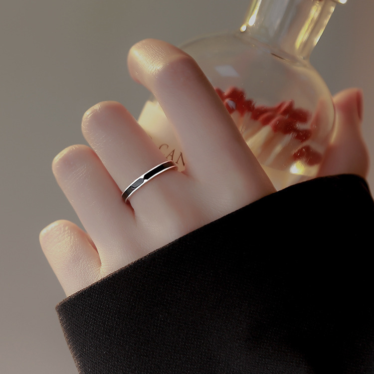 新款黑色戒指女设计小众开口戒指女时尚个性戒指潮流情侣百搭礼物