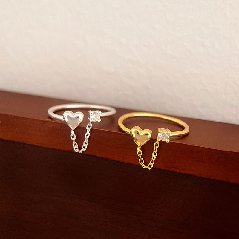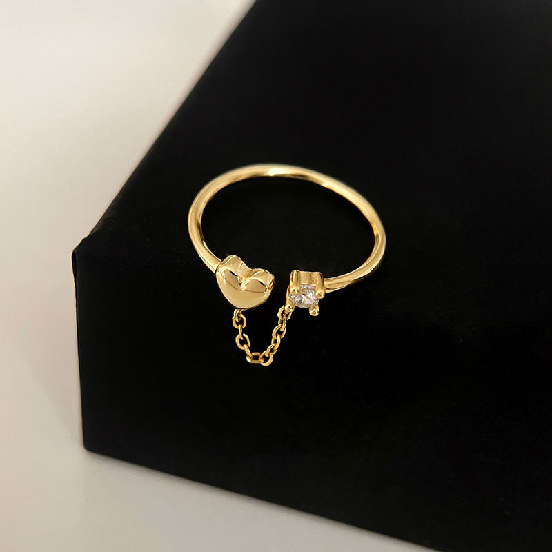 轻奢感爱心流苏戒指黄金色心形指环女开口清新甜美戒