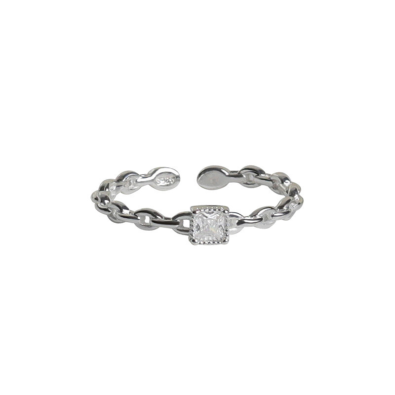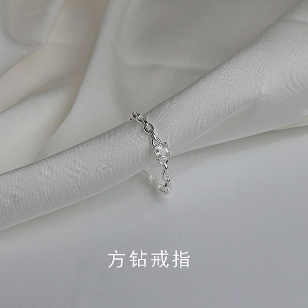 新款方钻戒女开口戒ins日韩简约镀银扭结冷淡风轻奢小众指环戒指
