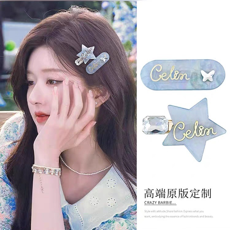透明水钻五角星醋酸甜美侧边刘海夹女的鸭嘴发夹