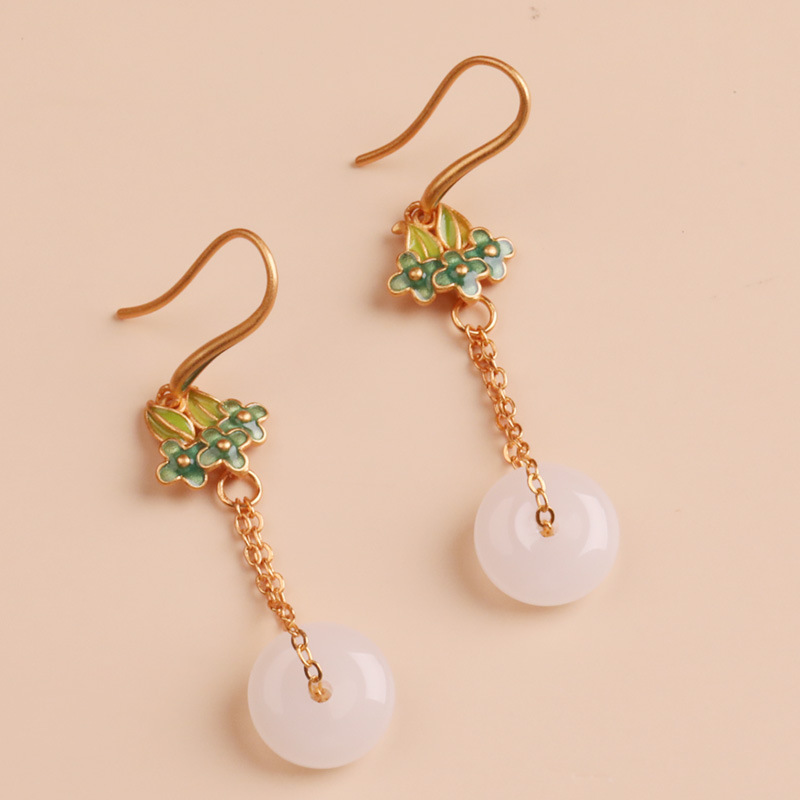 汉服宫廷中式耳坠中国复古风和田耳环宋代阳绿耳钉旗袍流苏耳饰