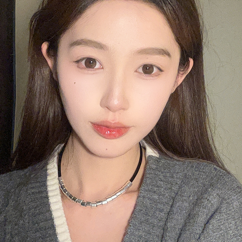 个性简约冷淡风银色金属圆圈皮质项链女小众设计感短款颈链锁骨链