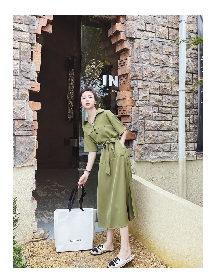 牛油果绿法式连衣裙女夏高级感~新款设计感气质显瘦a字衬衫裙
