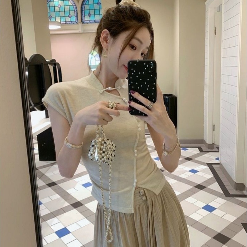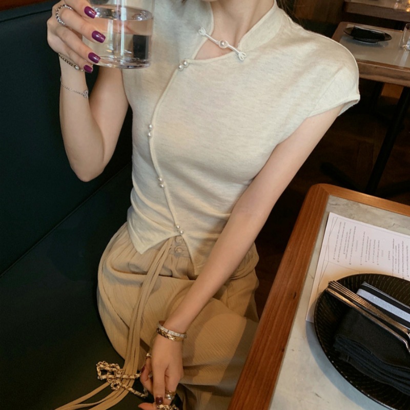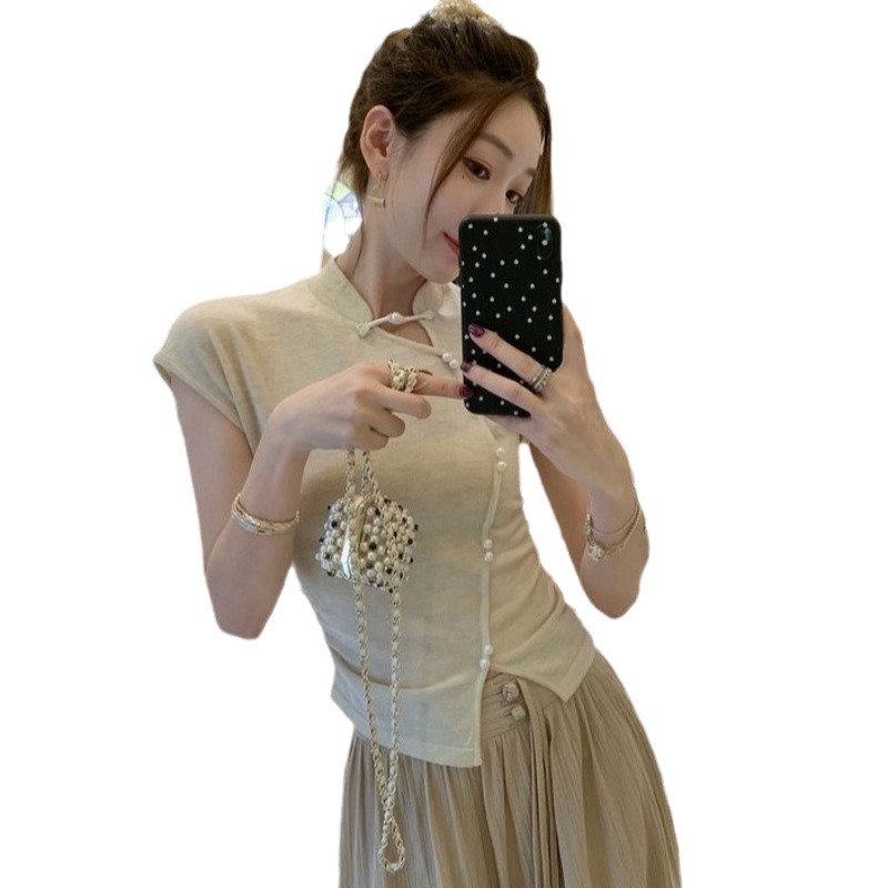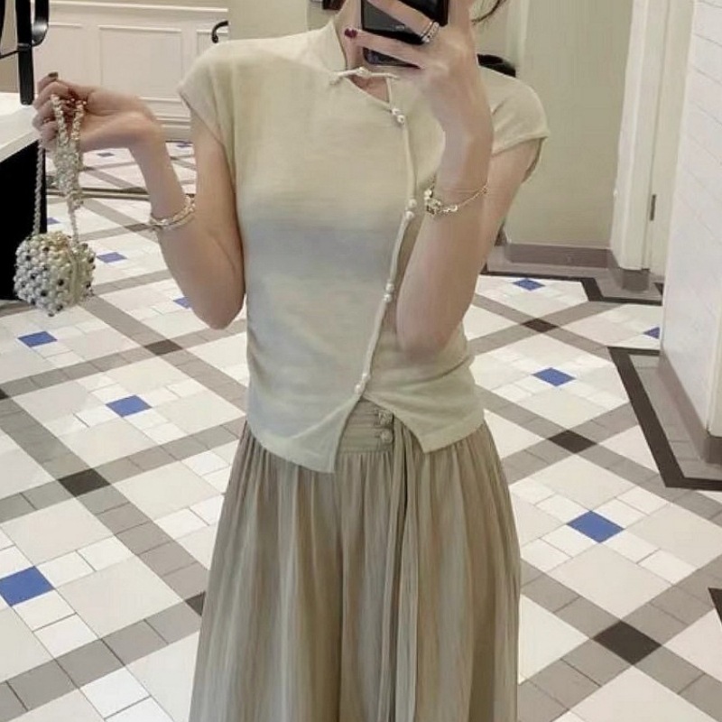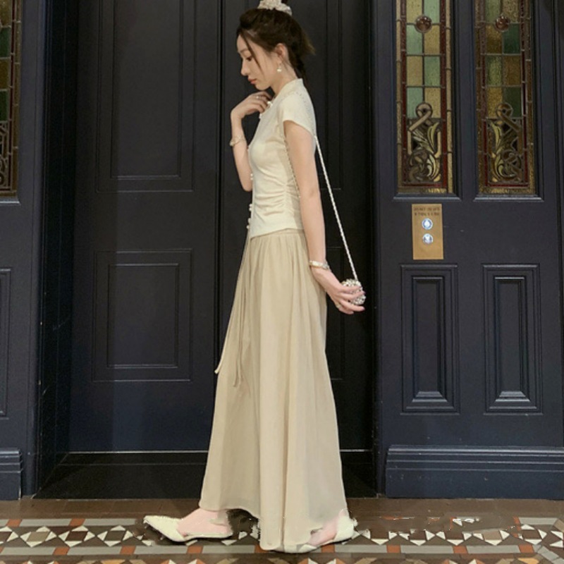 新中式国风不规则修身短袖T恤~上衣高腰休闲阔腿裙裤两件套套装夏