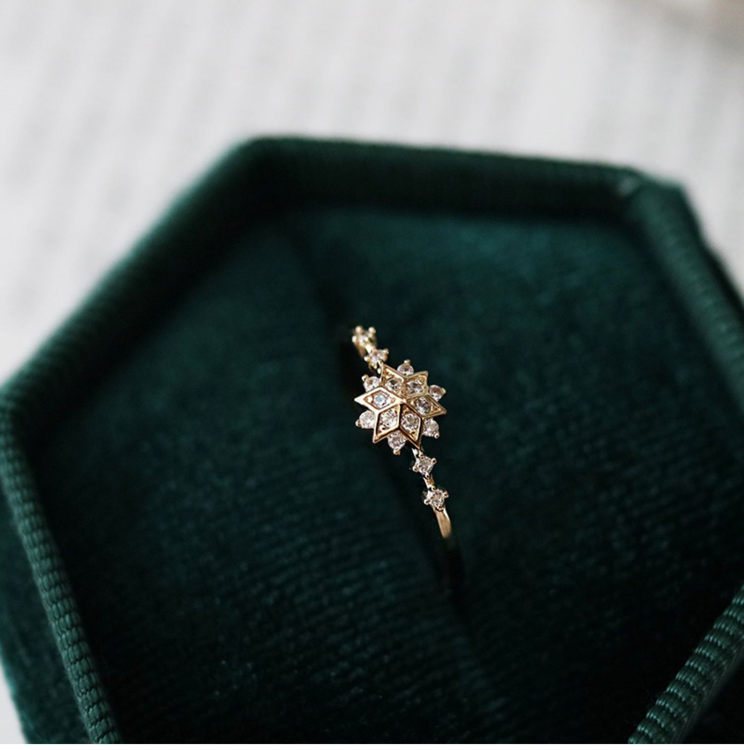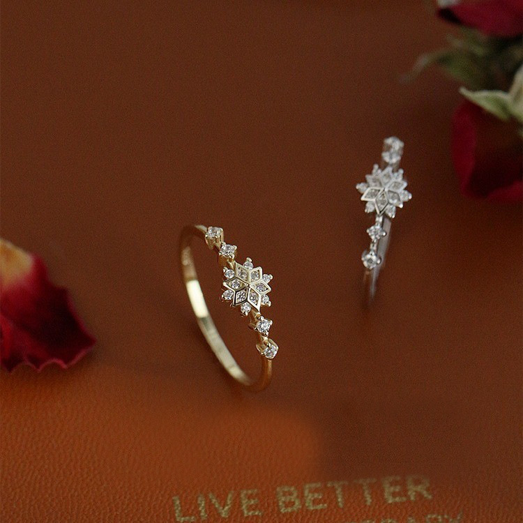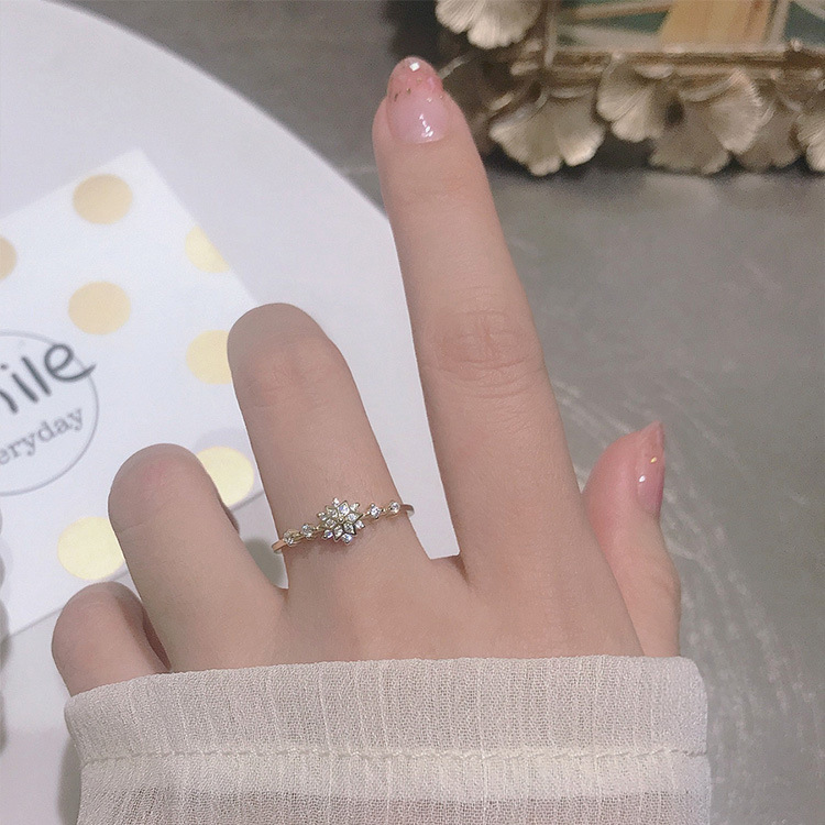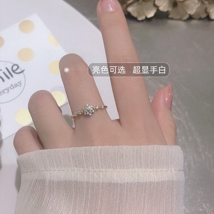 新款日系轻奢纤细百搭雪花戒指精致微镶皓石闪钻女指环