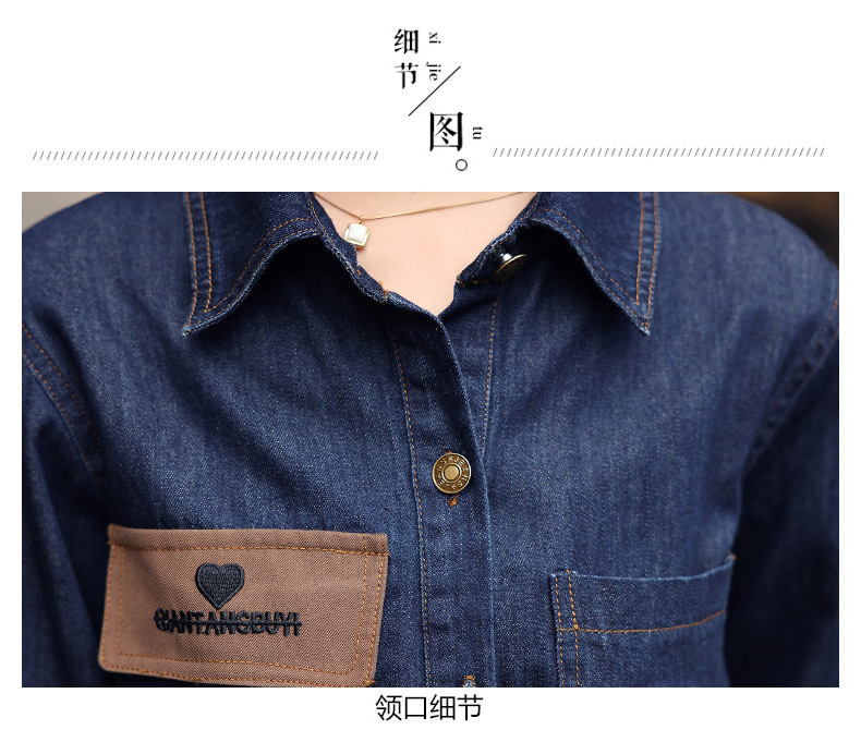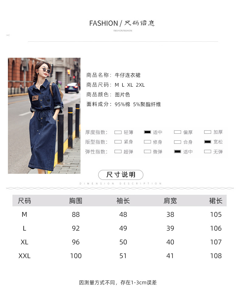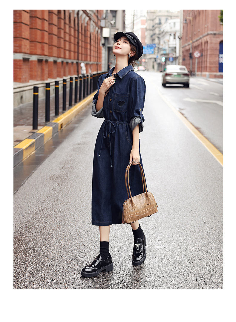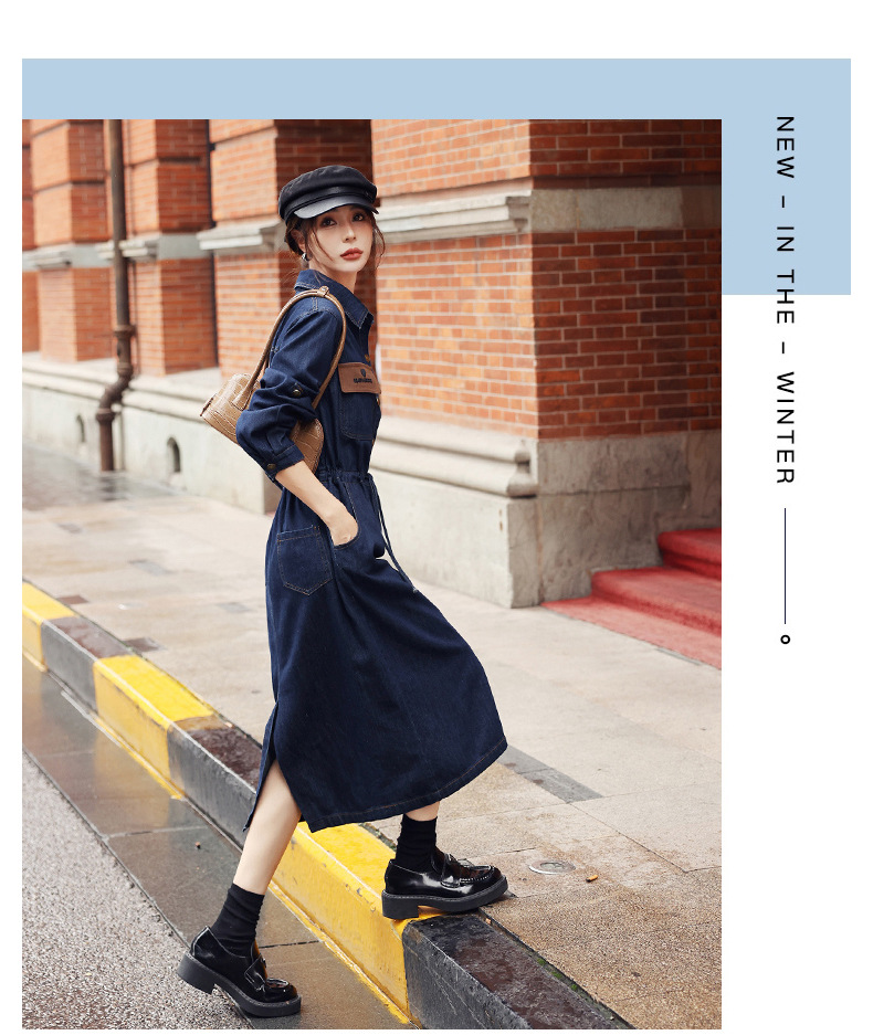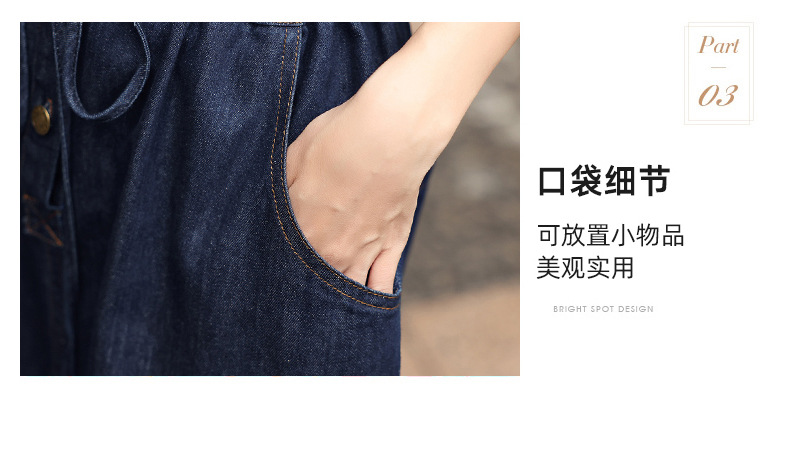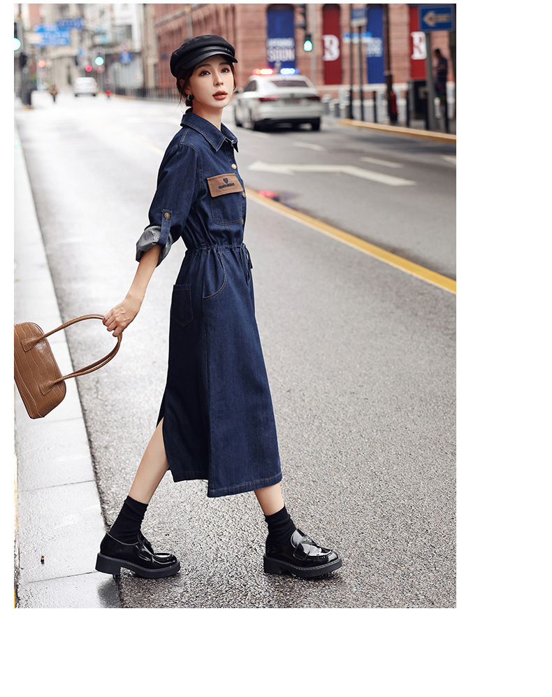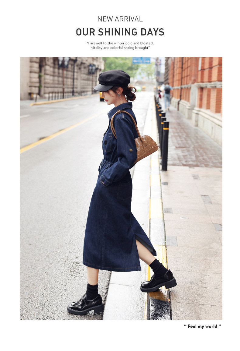 时尚春装新款宽松显瘦中长女装洋气绣花抽绳长袖牛仔连衣裙子