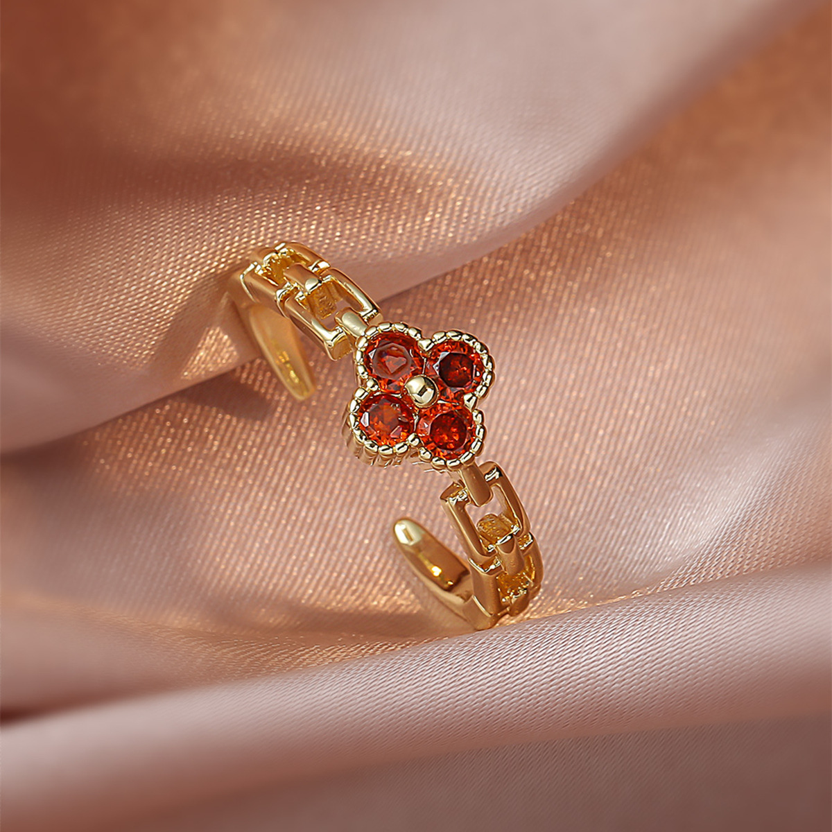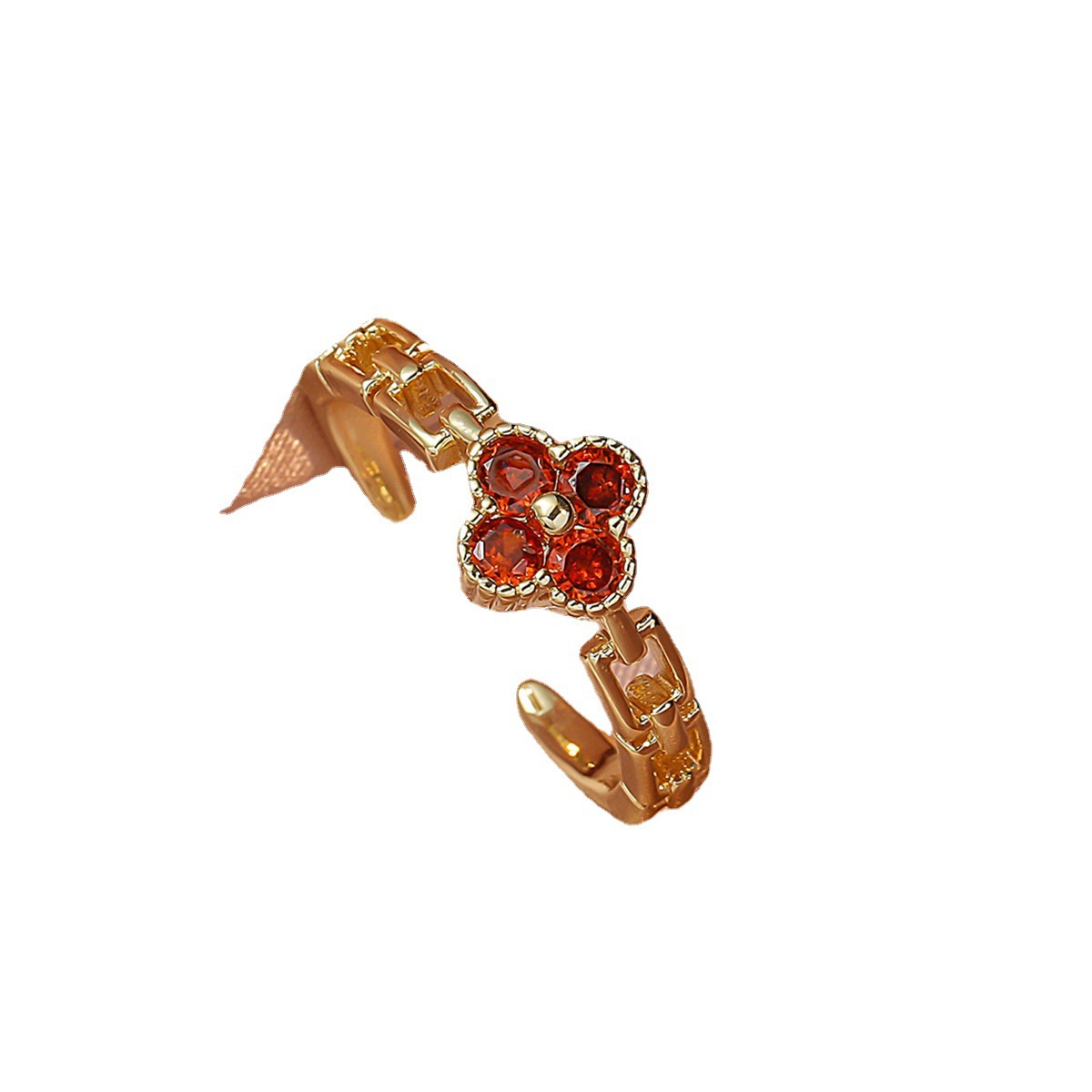 新款四叶花锆石个性带钻四叶草戒指女幸运草开口指环