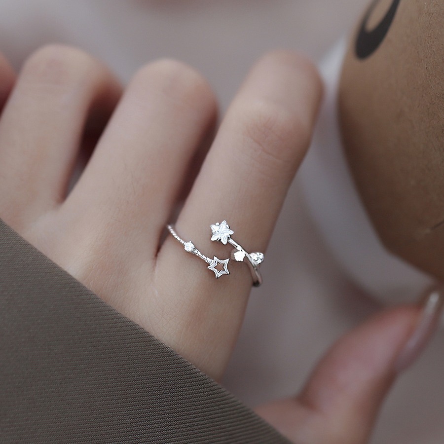 新款闪钻流星戒指女时尚轻奢感小众冷淡风闺蜜食指细款个性开口戒