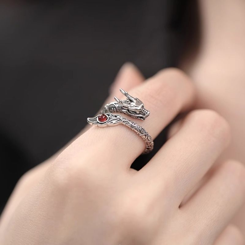 复古神龙摆尾戒指男女士款情侣戒指指环尾戒新款本命年个性感气质