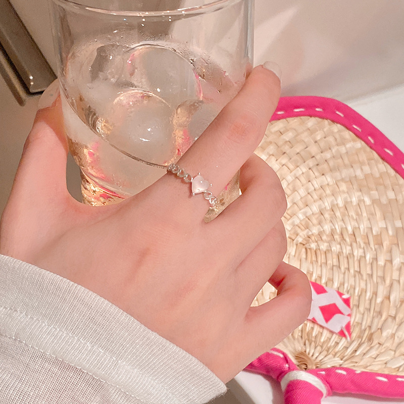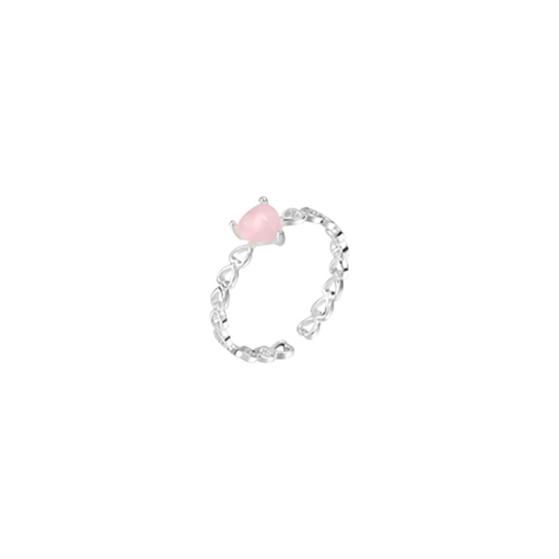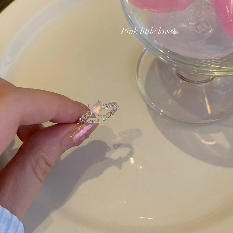 新款爱心粉色晶石戒指女ins小众甜美可爱开口指环手饰品