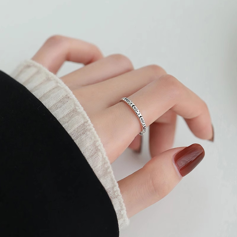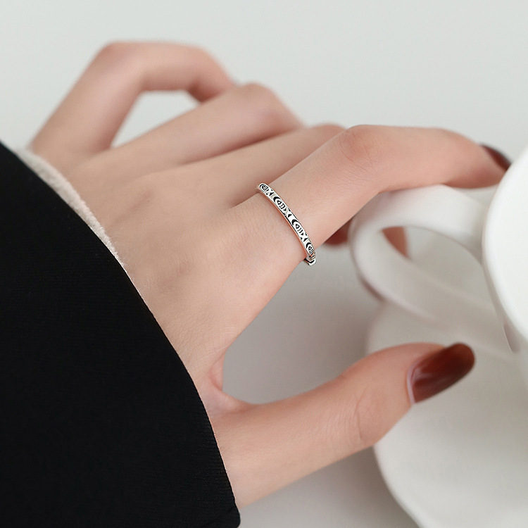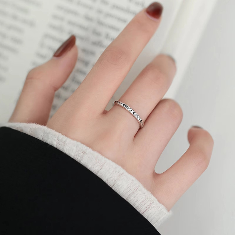 新款年年有余食指戒指素圈女小众个性风潮尾戒轻奢开口戒送女友