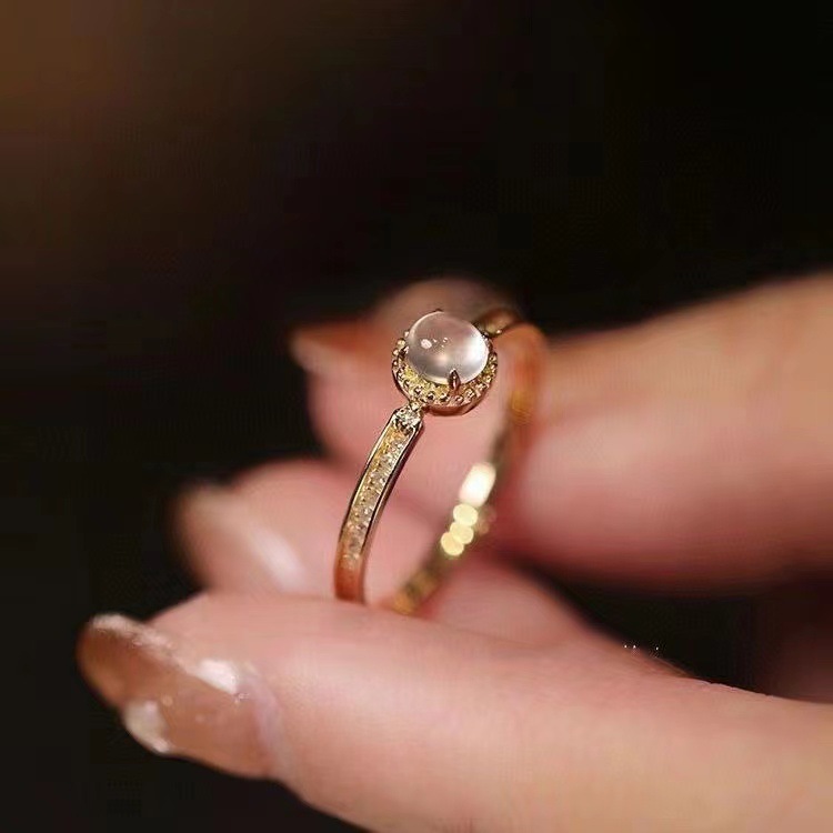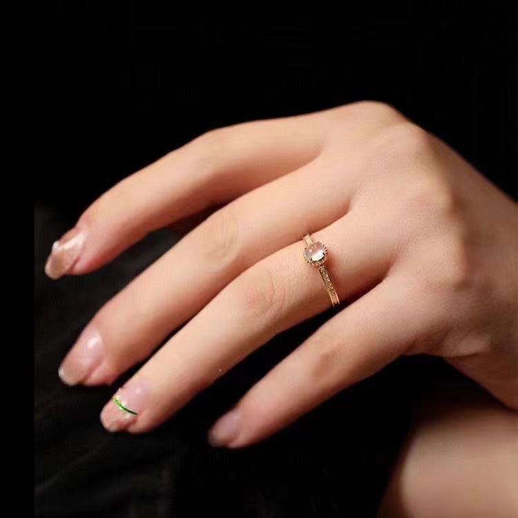 新款冰种玉髓镶小钻露珠开口戒指女轻奢简约ins个性百搭潮流