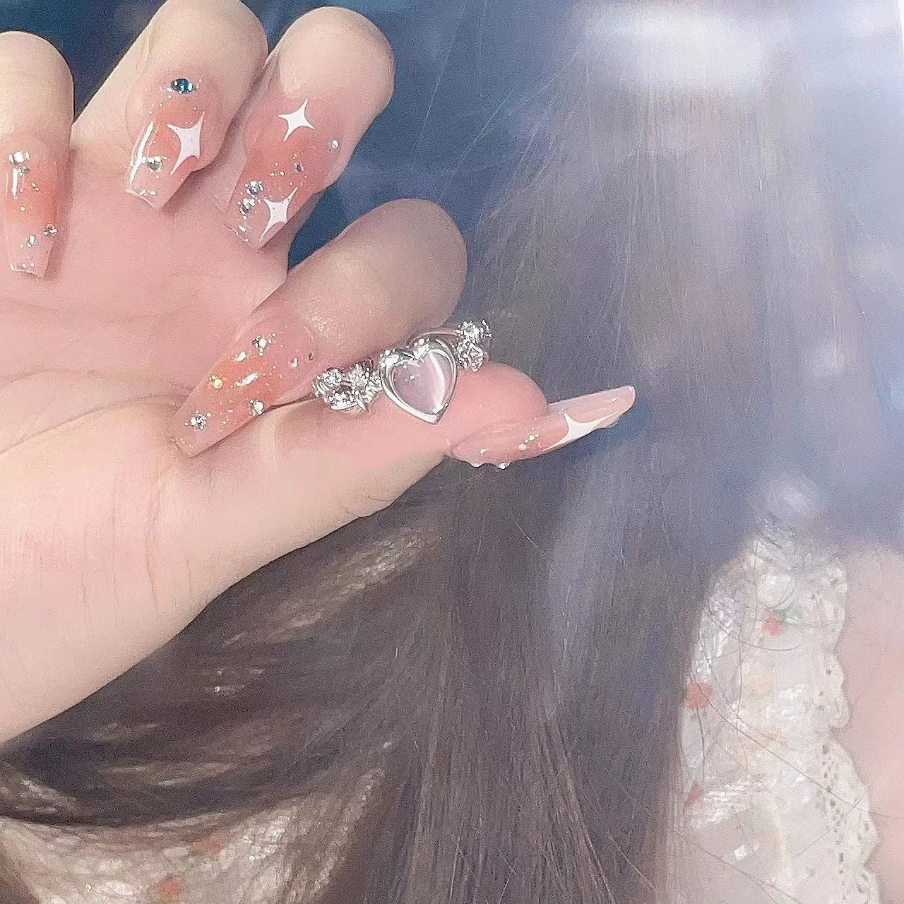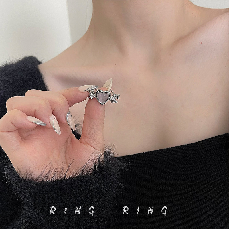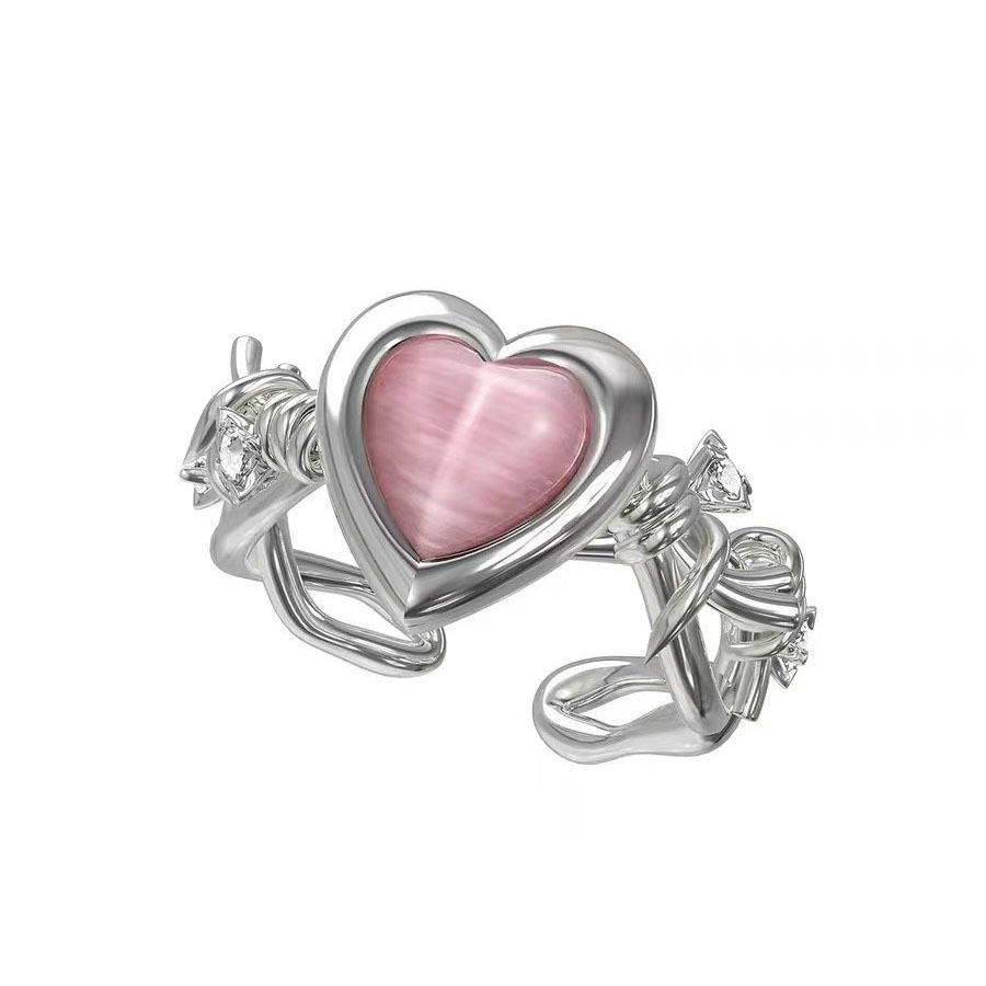 新款个性爱心猫眼石荆棘戒指女式食指活口戒指环小众设计感
