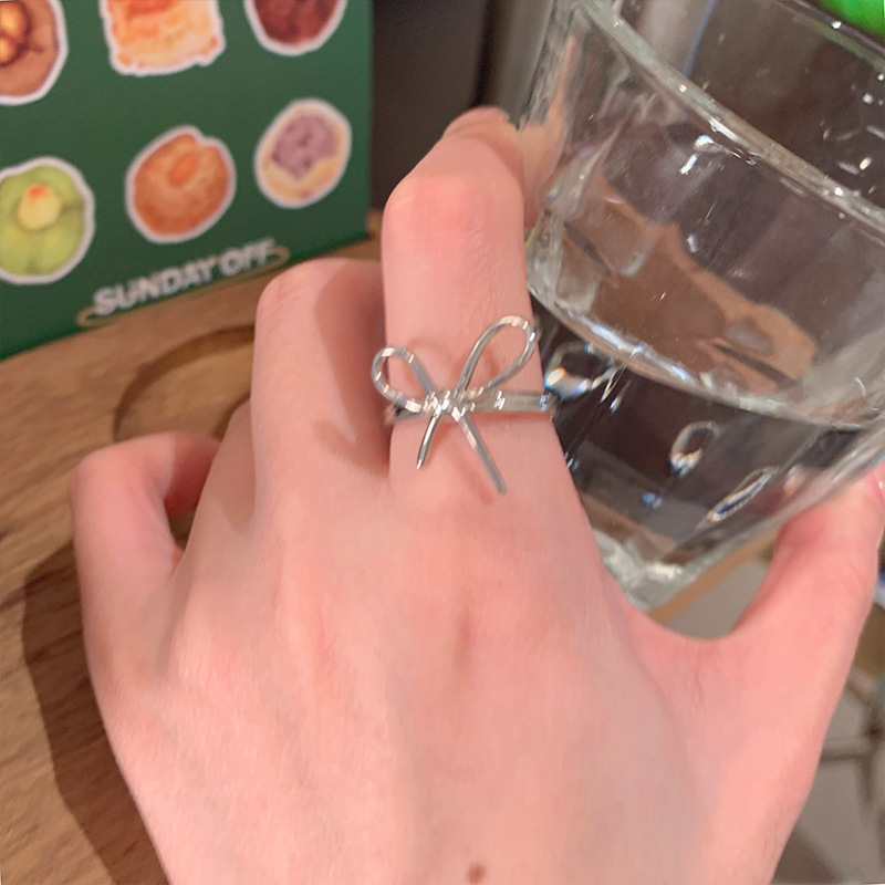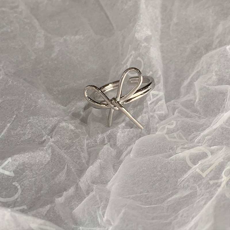 新款线条蝴蝶结开口简约戒指女可调节食指戒小众设计轻奢素戒