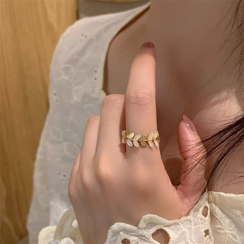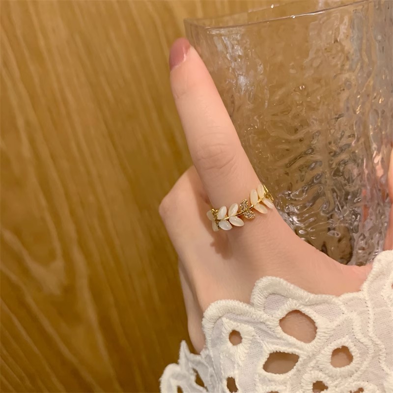 猫眼石麦穗戒指女小众甜美叶子轻奢感独特气质冷淡风开口食指指环