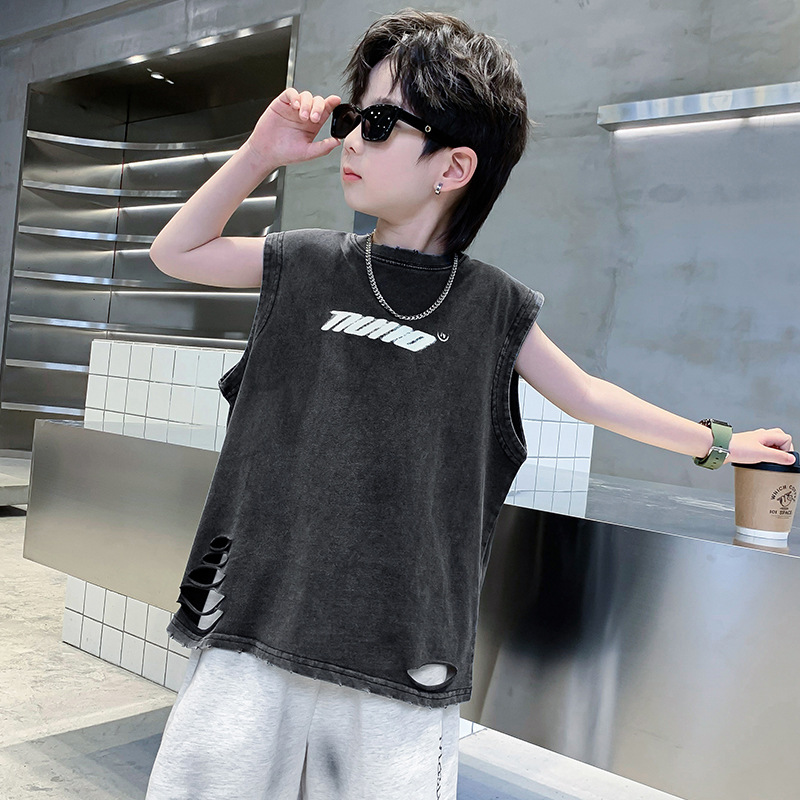 痞帅男童t恤夏装无袖2025新款纯棉儿童装男孩背心夏季时髦上衣潮T
