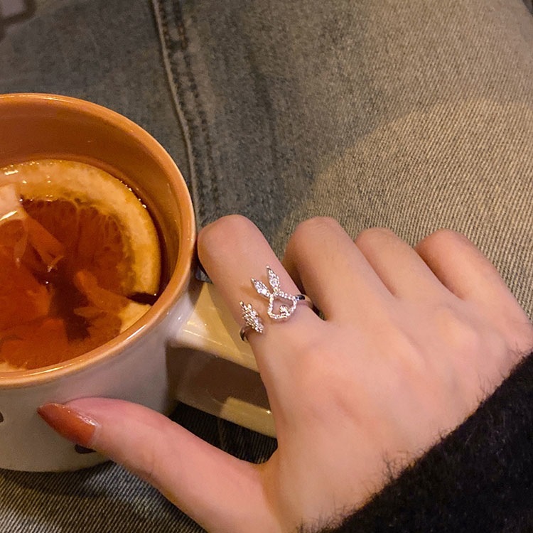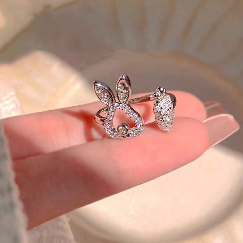 兔子胡萝卜戒指女网红小众设计活口可调节百搭食指指环本命年饰品