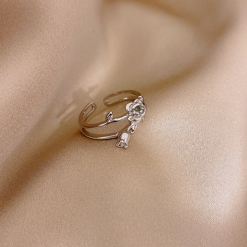 新品玫瑰花戒指女ins简约气质双层网红款日韩百搭食指戒