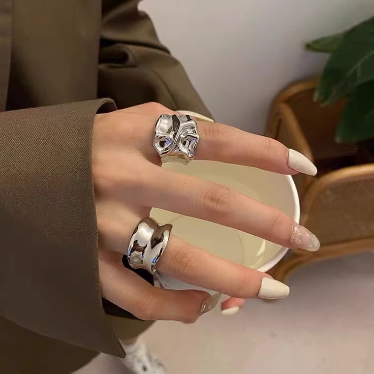 新款凹槽镜面开口戒指女ins时尚百搭小众设计食指戒个性网红指环