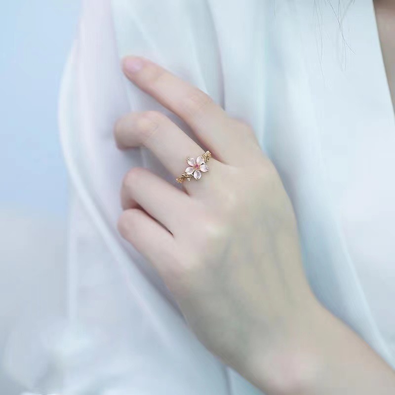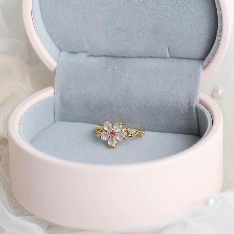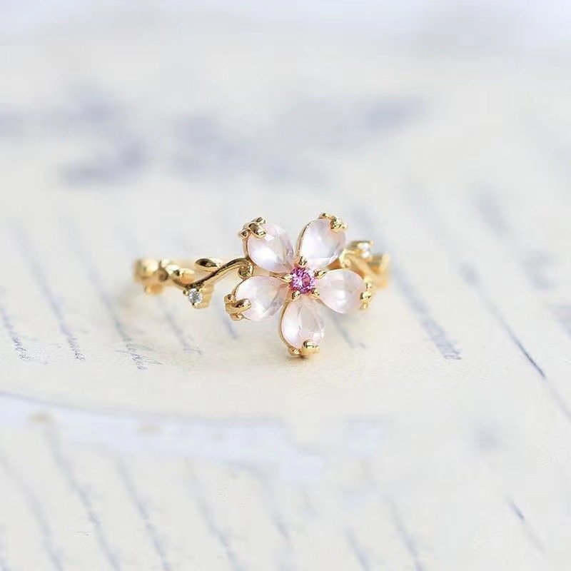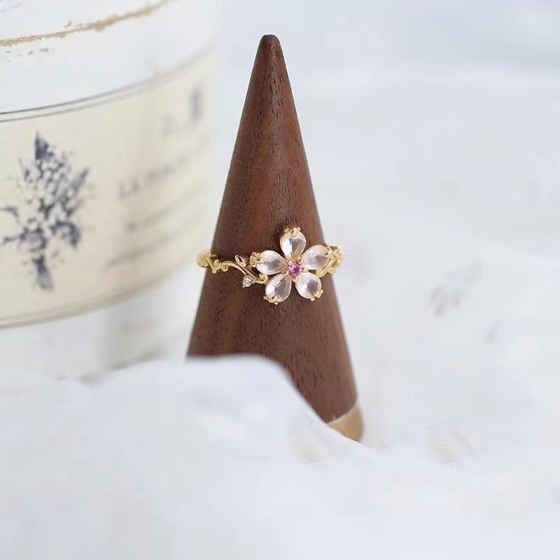 新款逃之夭夭仙气古风国风仿粉晶桃花花朵小清新气质镀18K金戒指