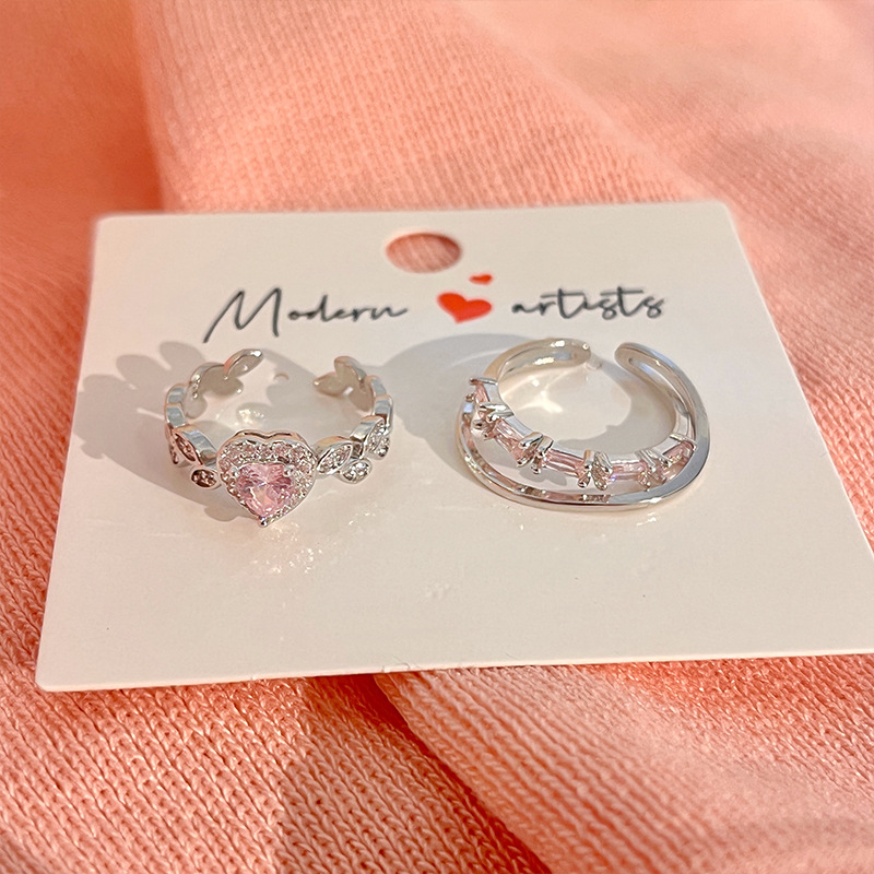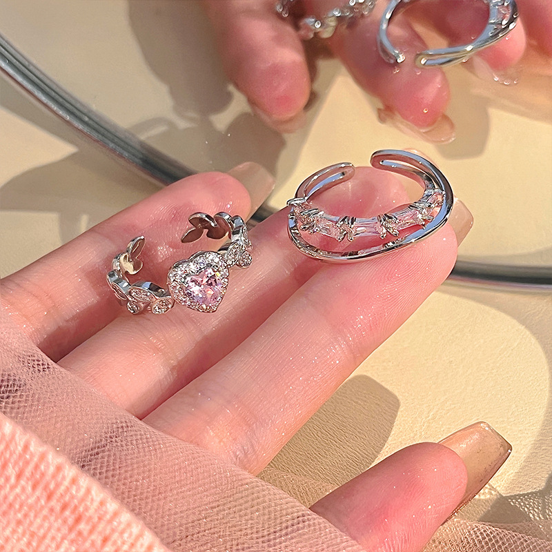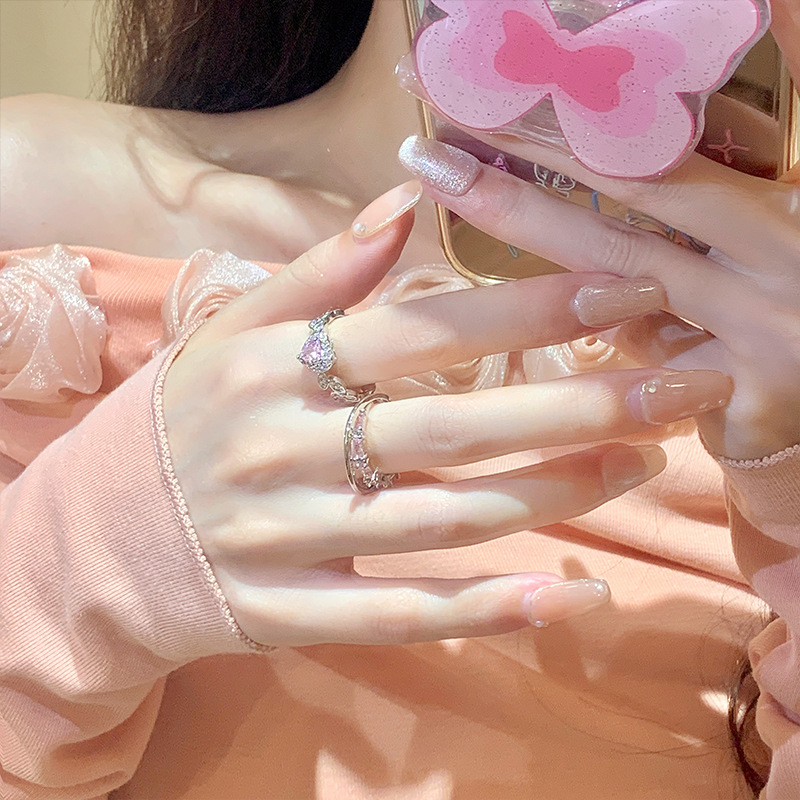 新款甜心宝贝浪漫爱心锆石戒指女百搭个性甜美情侣对戒个性时尚指