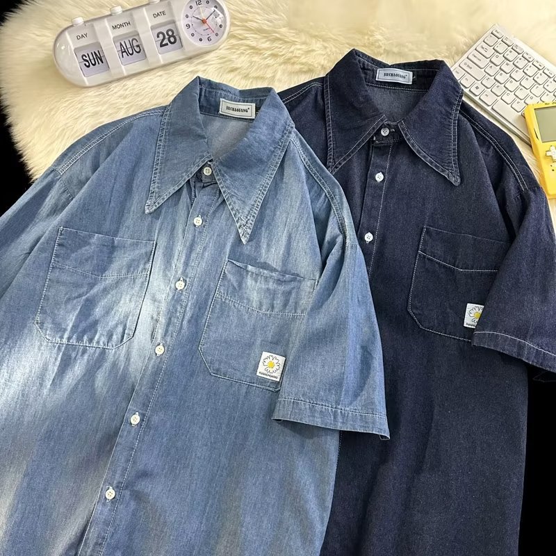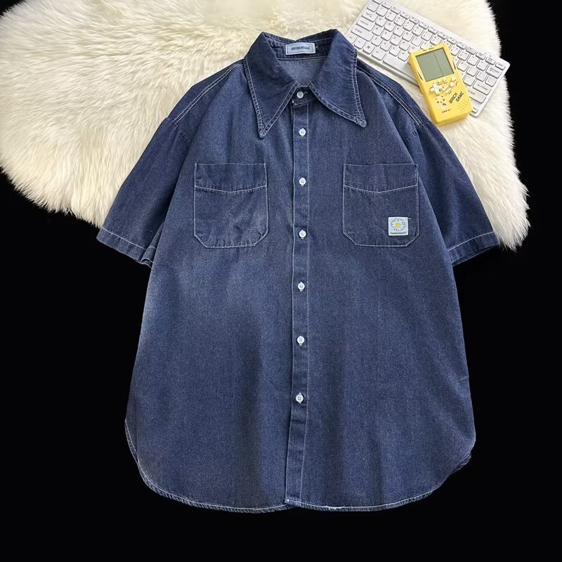 纯色工装衬衫男短袖潮牌宽松简约百搭衬衣男士夏季薄款五分袖上衣