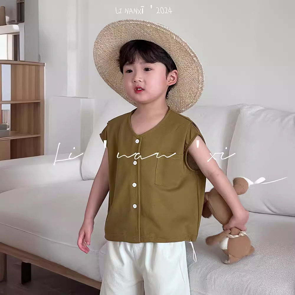 男童背心24夏新款男女童针织无袖开衫珠地条纹百搭型男出街必备
